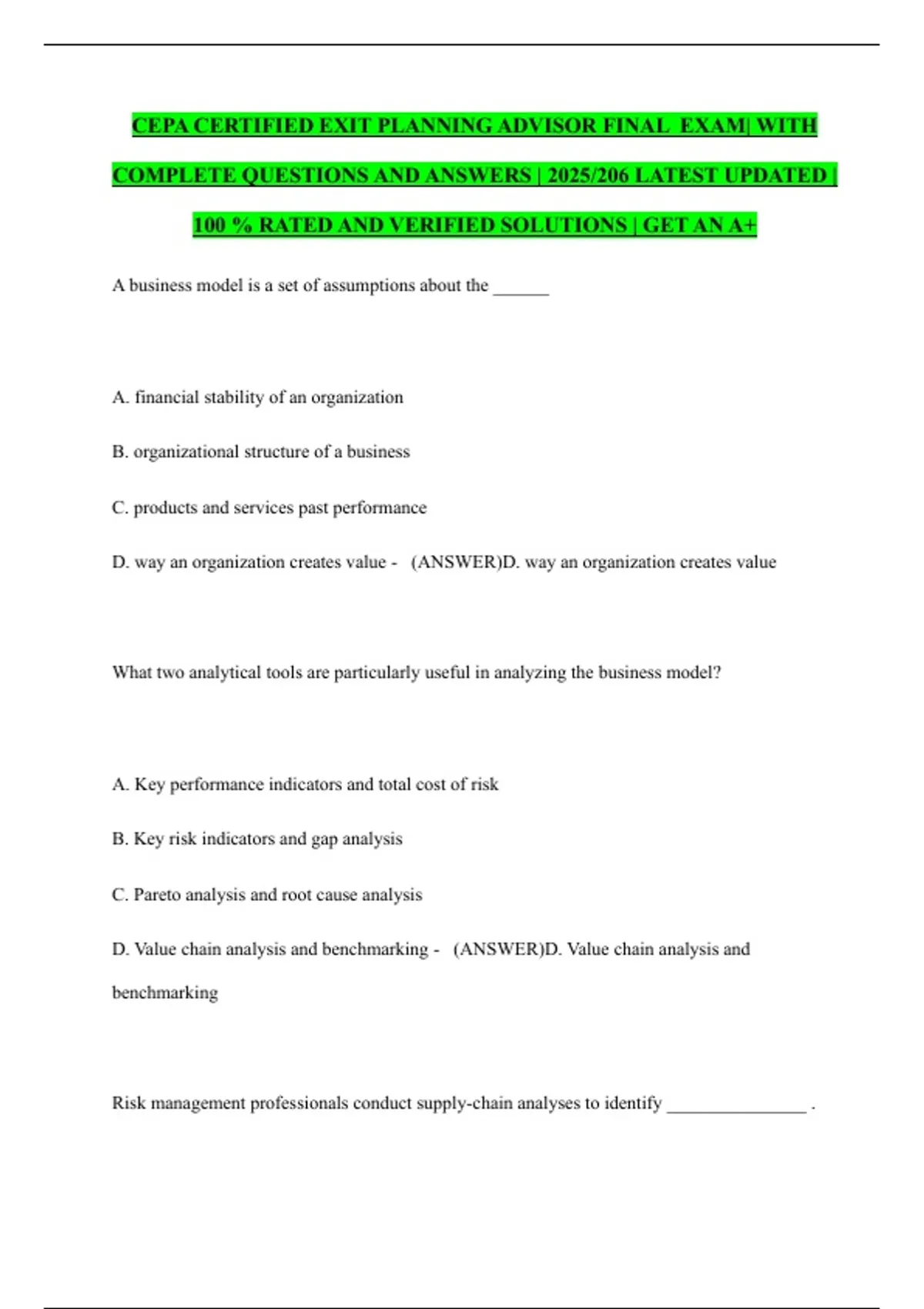 QUESTIONS AND ANSWERS | 2025/206 LATEST UPDATED | 100 % RATED AND VERIFIED