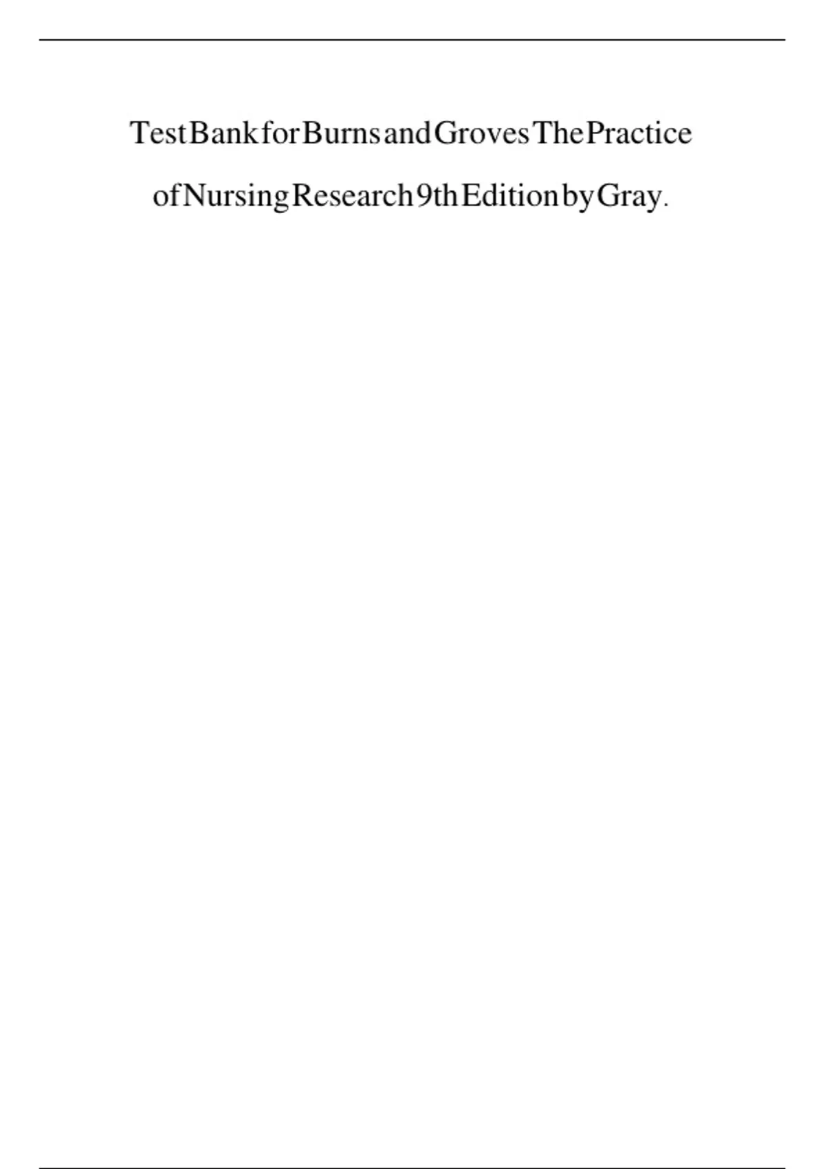 Test Bank For Burns and Grove's The Practice of Nursing Research Appraisal, Synthesis, and Generation of Evidence 9th Edition by Jennifer R. Gray; Susan K. Grove All 1-29 Chapters Covered ,Latest Edition