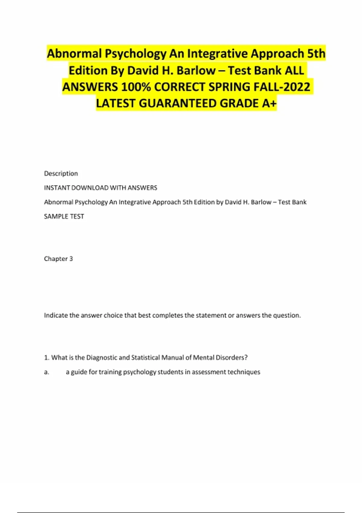 Test Bank for Abnormal Psychology An Integrative Approach 5th Edition by David H. Barlow