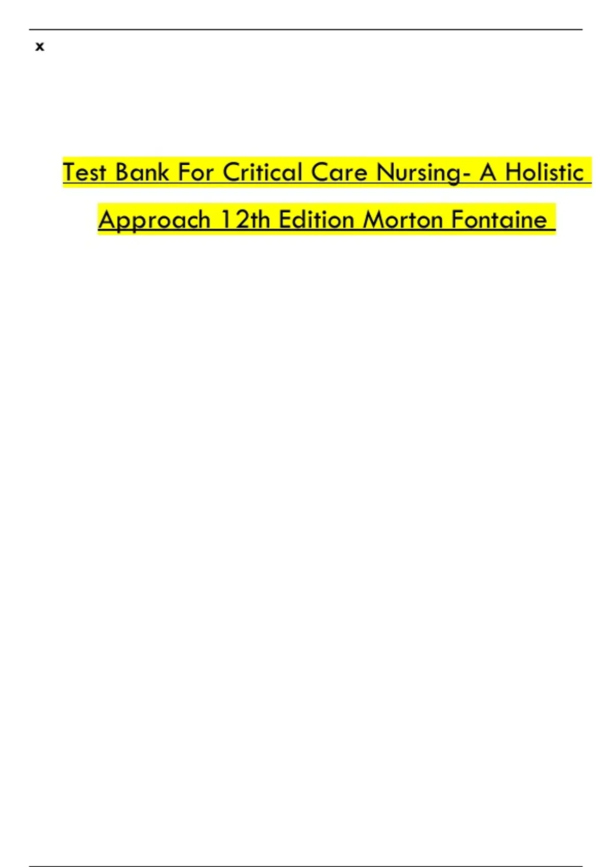 Test Bank For Critical Care Nursing- A Holistic Approach 12th Edition Morton Fontaine