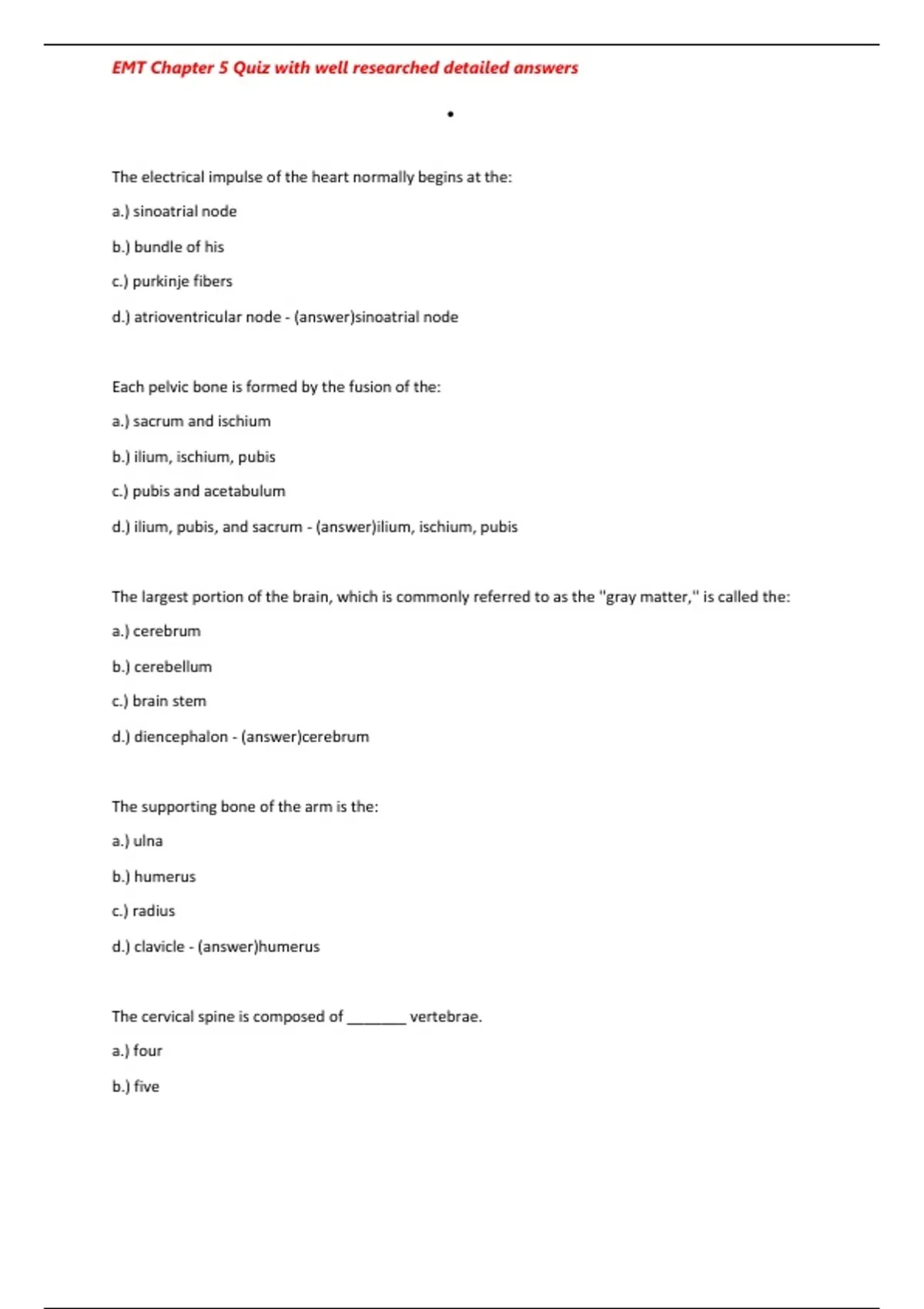 , EMT Chapter 5 Quiz with well researched detailed answers