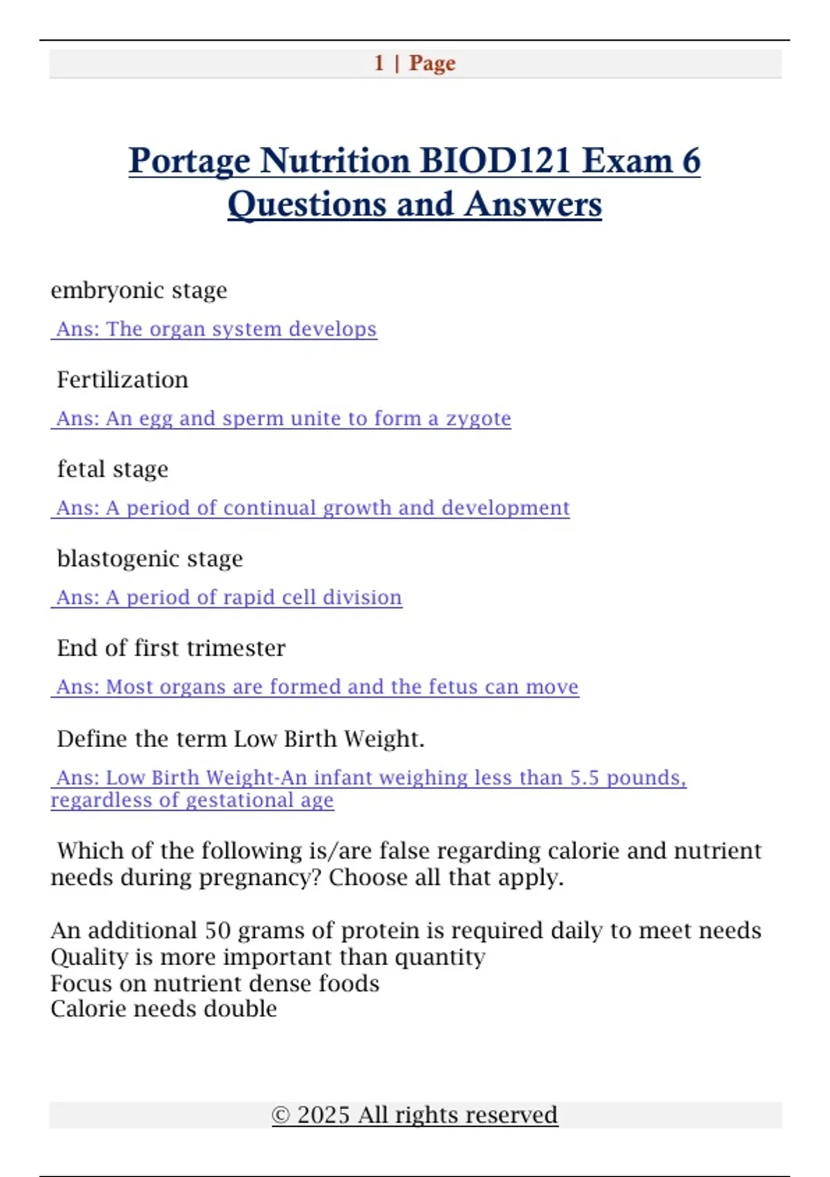 Portage Nutrition BIOD121 Exam 6
