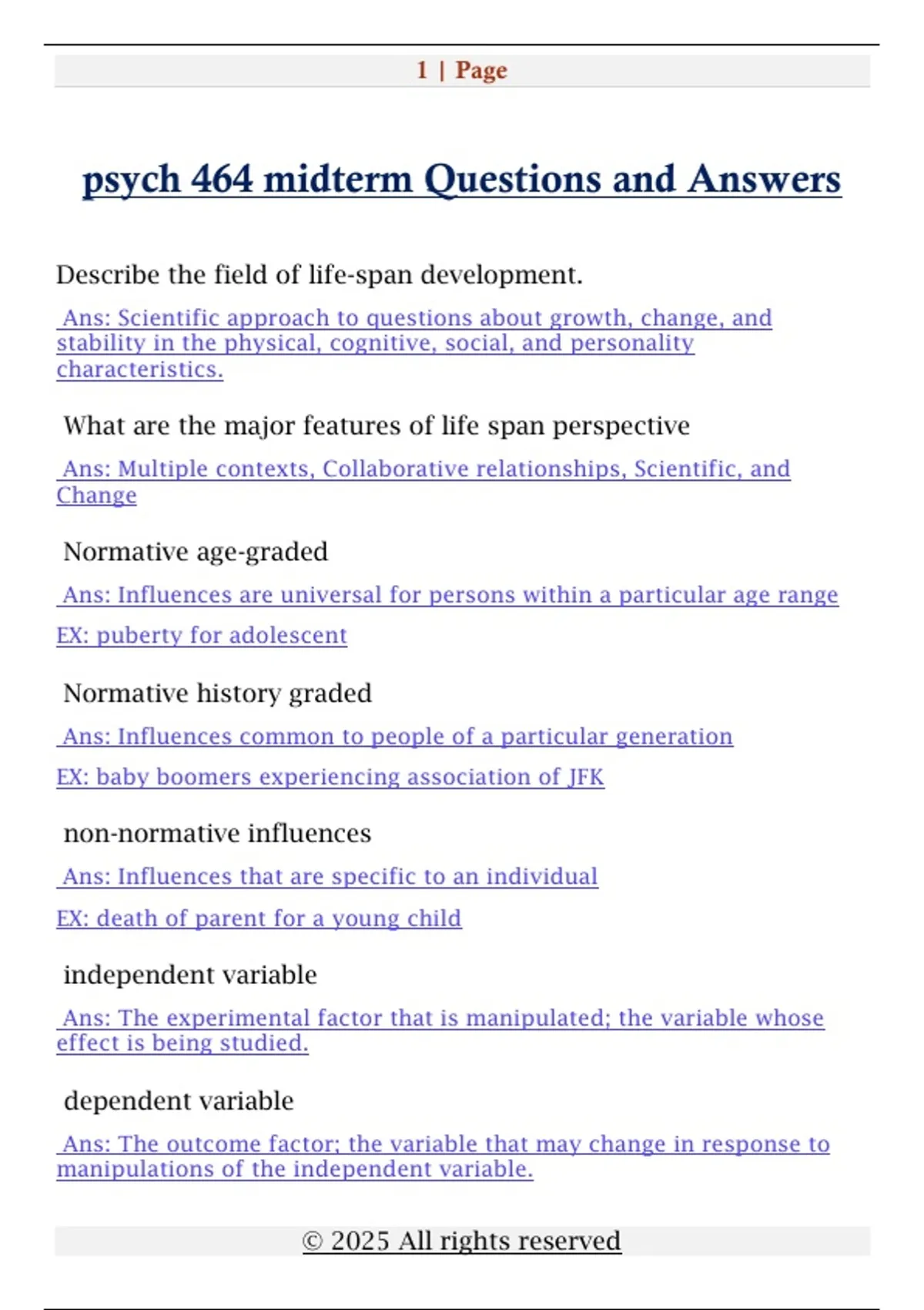 psych 464 midterm Questions and Answers