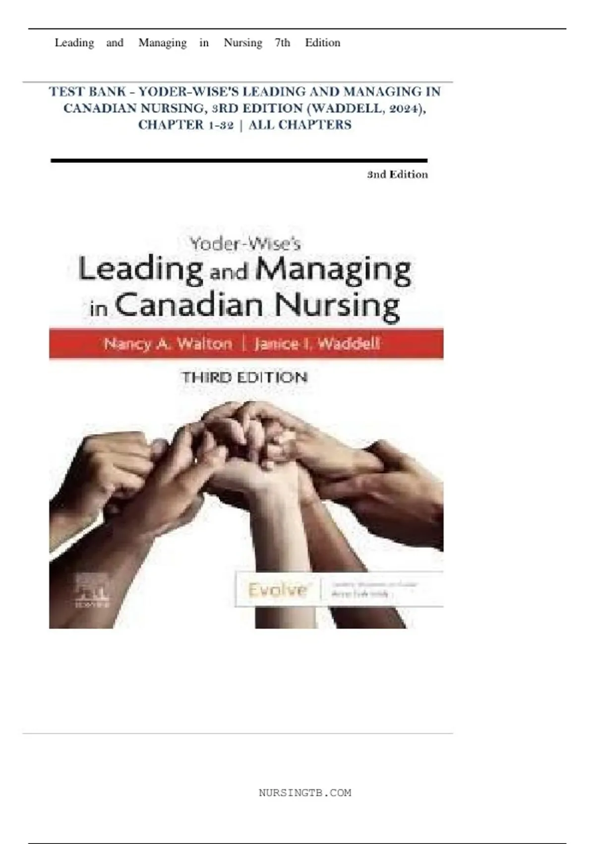 TEST BANK - YODER-WISE'S LEADING AND MANAGING IN CANADIAN NURSING, 3RD EDITION (WADDELL, 2024), CHAPTER 1-32 | ALL CHAPTERS