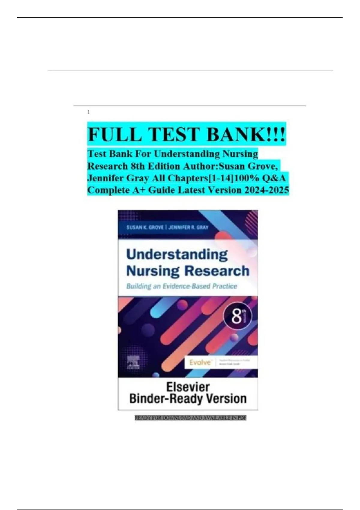 ,Test Bank for Understanding Nursing Research, 8th Edition, Susan Grove, J