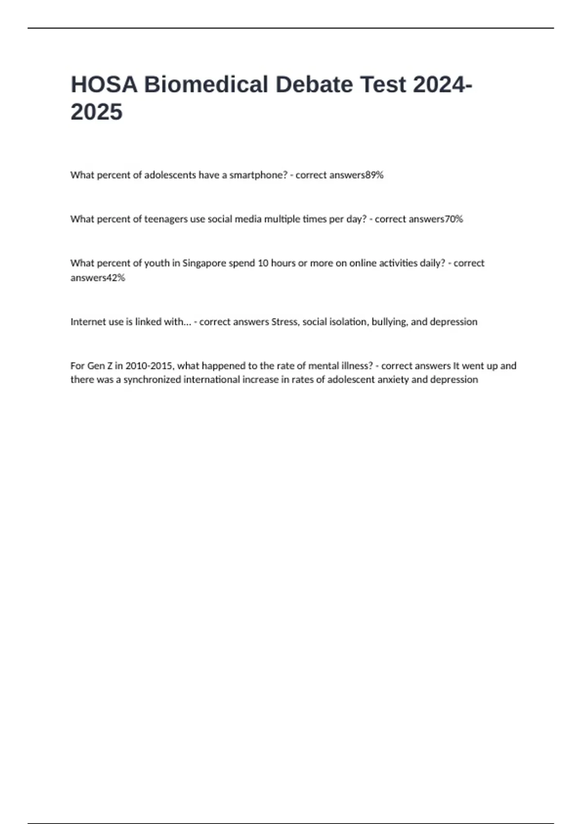 HOSA Biomedical Debate Test 2024-