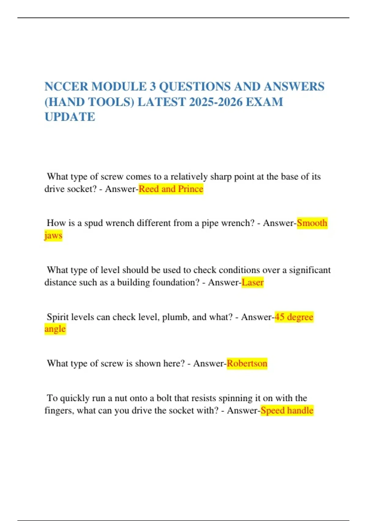 (HAND TOOLS) LATEST 2025-2026 EXAM