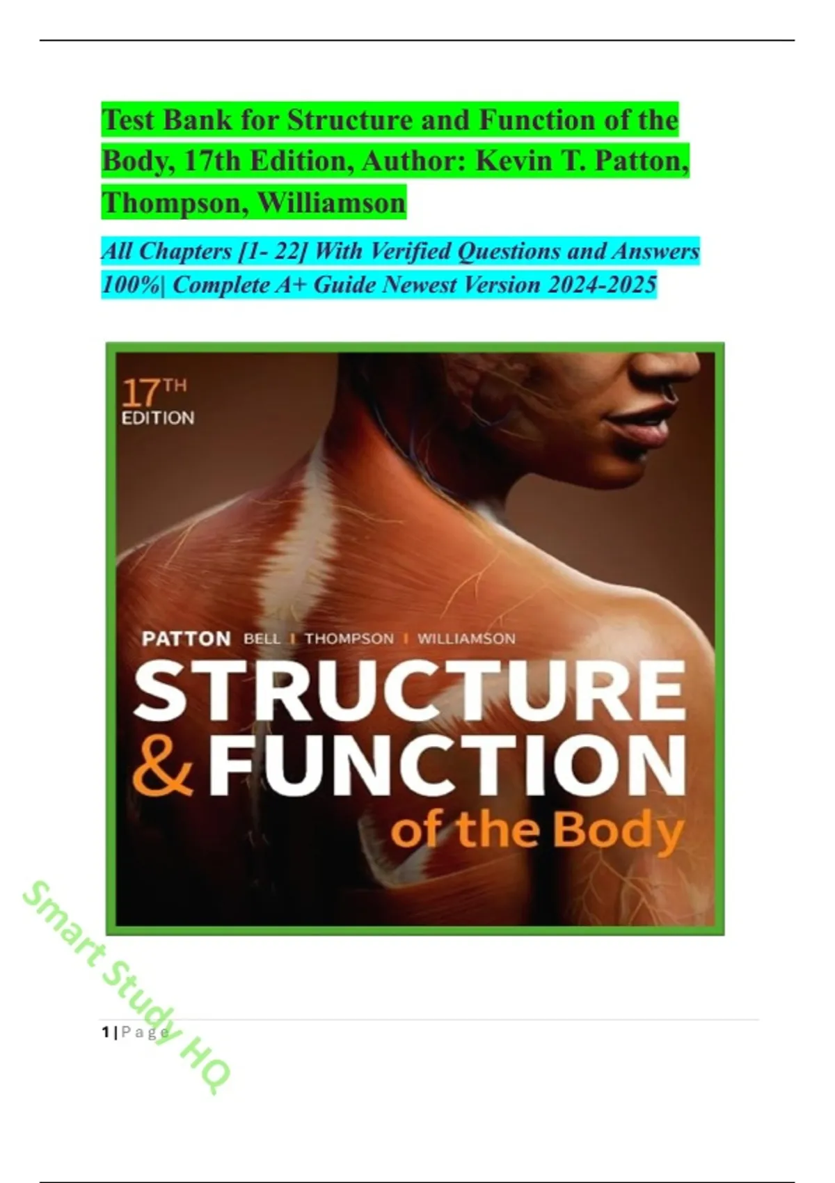 Test Bank - Structure and Function Of The Body 17th Edition Author:Kevin T. Patton,Thompson,Williamson All Chapters[1-22] With Verified Questions And Answers 100%Complete A+ Guide Newest Version