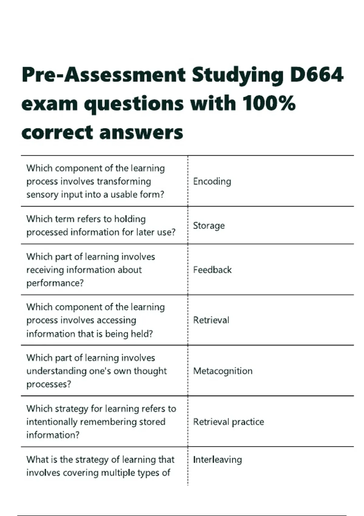 Pre-Assessment Studying D664 exam questions with 100- correct answers