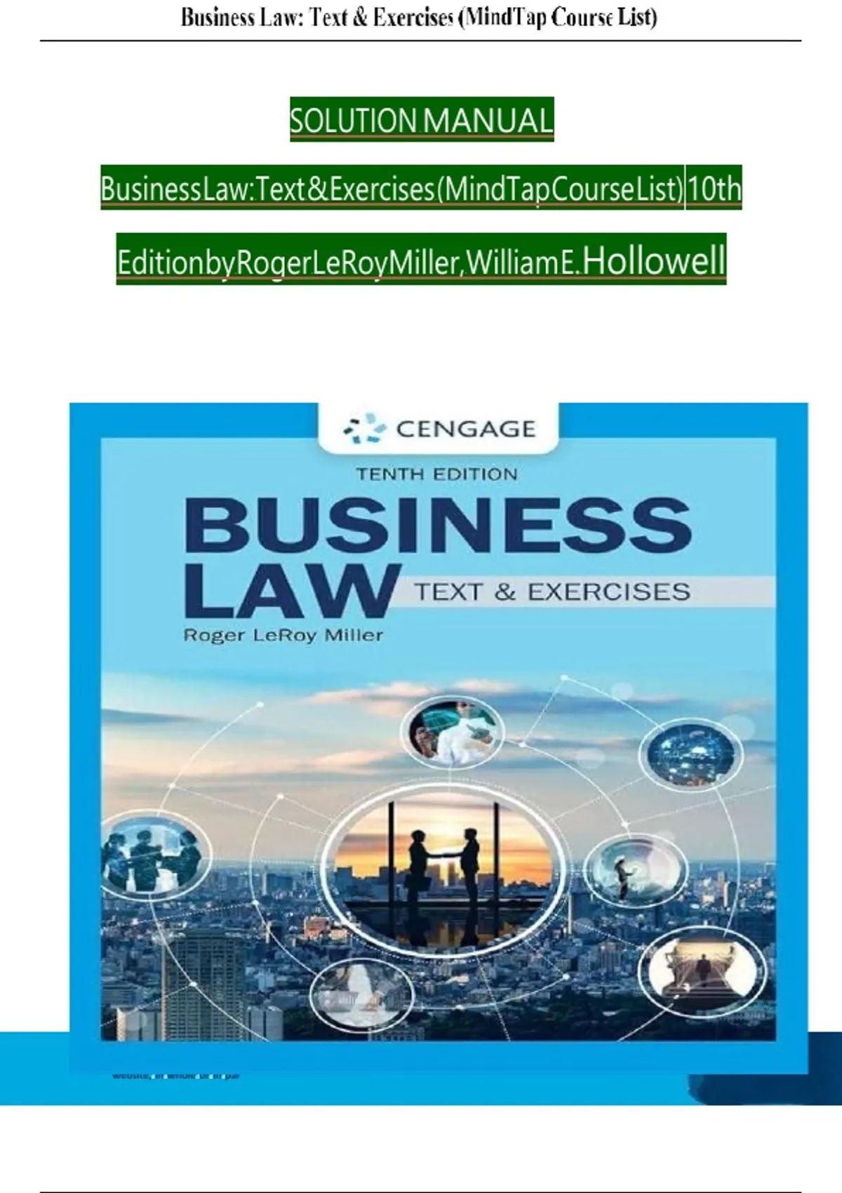 Solution Manual For Business Law: Text & Exercises, 10th Edition by Roger LeRoy Miller, William E. Hollowell, Verified Chapters 1 - 43, Complete Newest Version