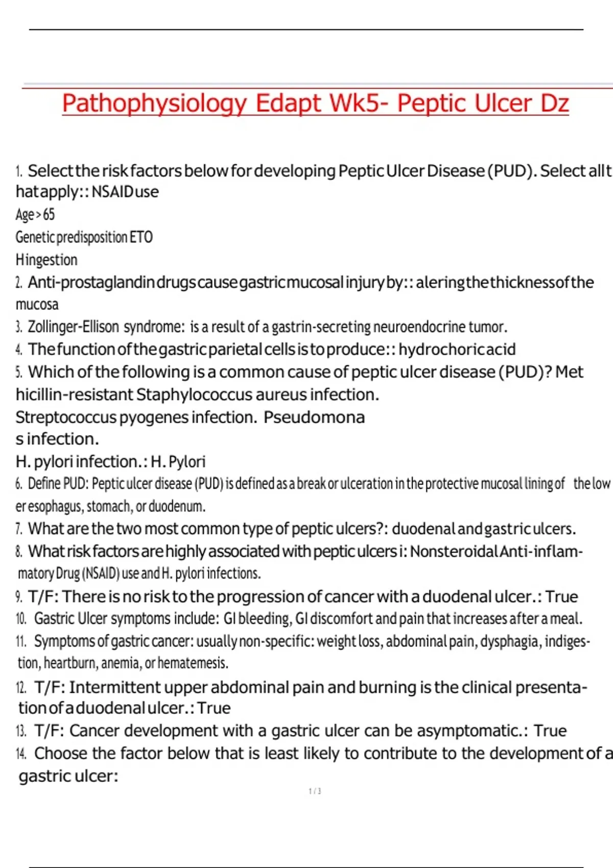 Pathophysiology Edapt Wk5- Peptic Ulcer Dz