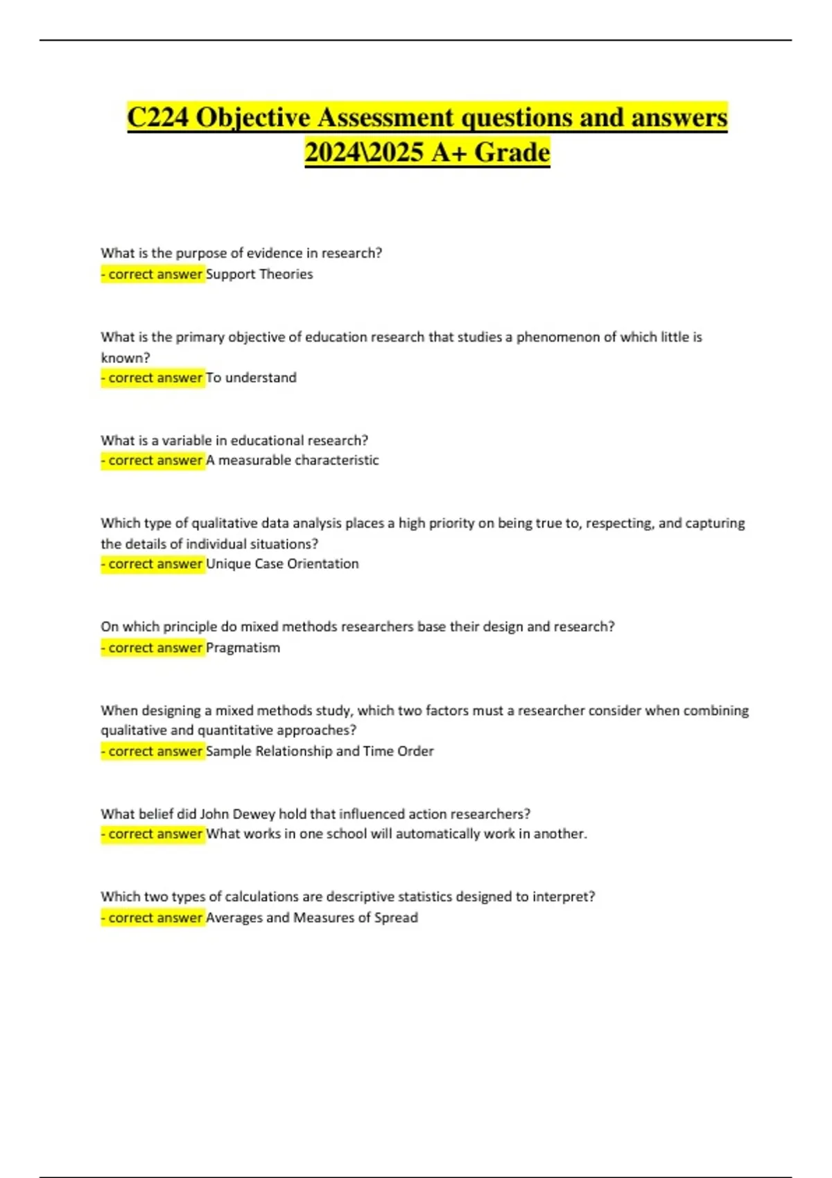 - correct answer Unique Case Orientation