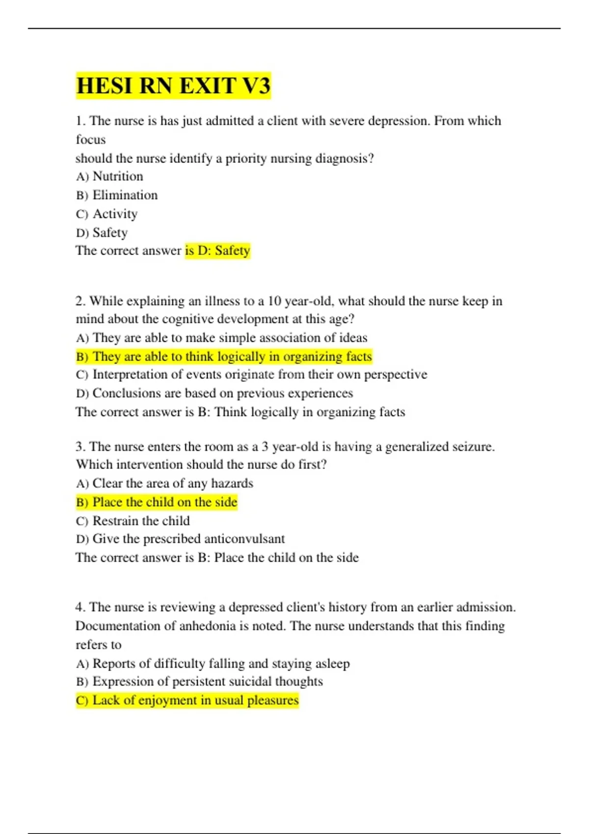 3. The nurse enters the room as a 3 year-old is having a generalized seizure.