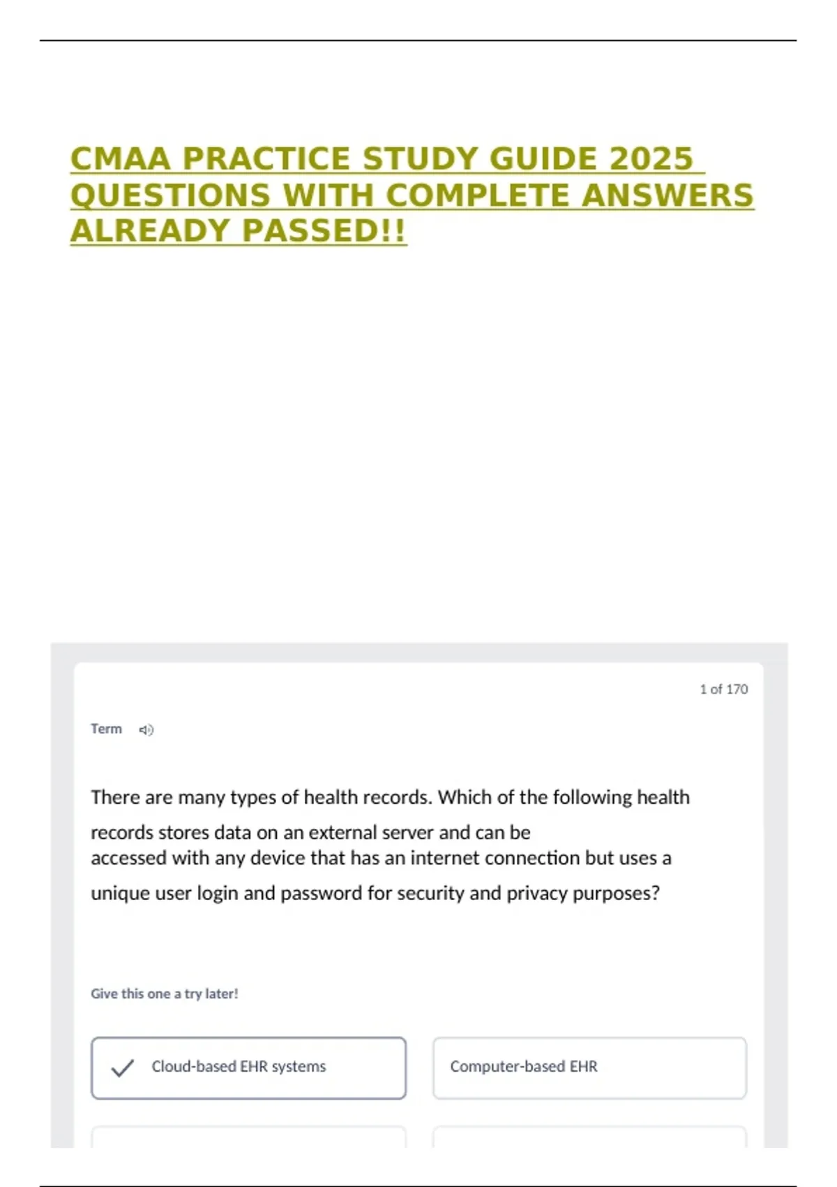 CMAA PRACTICE STUDY GUIDE 2025 QUESTIONS WITH COMPLETE ANSWERS ALREADY PASSED!!