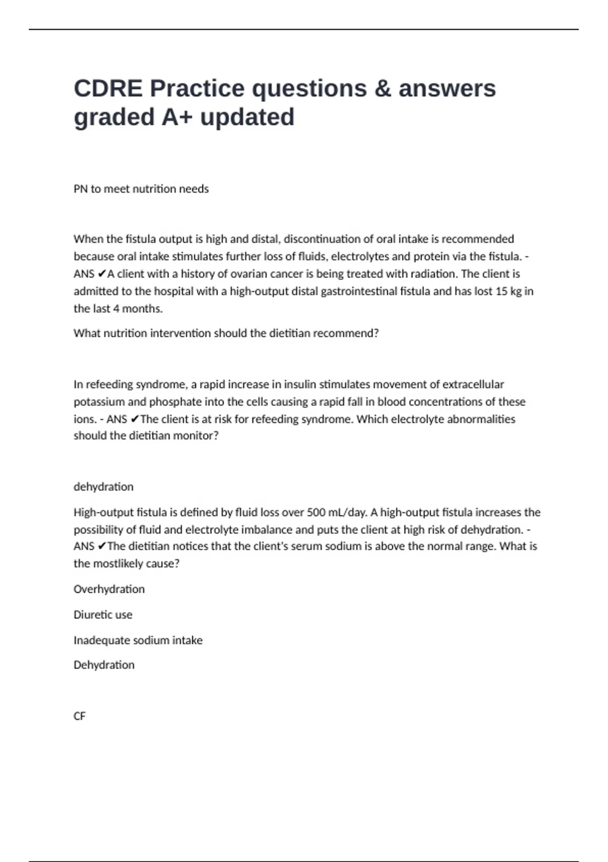 ANS ✔The dietitian notices that the client's serum sodium is above the normal range. What is