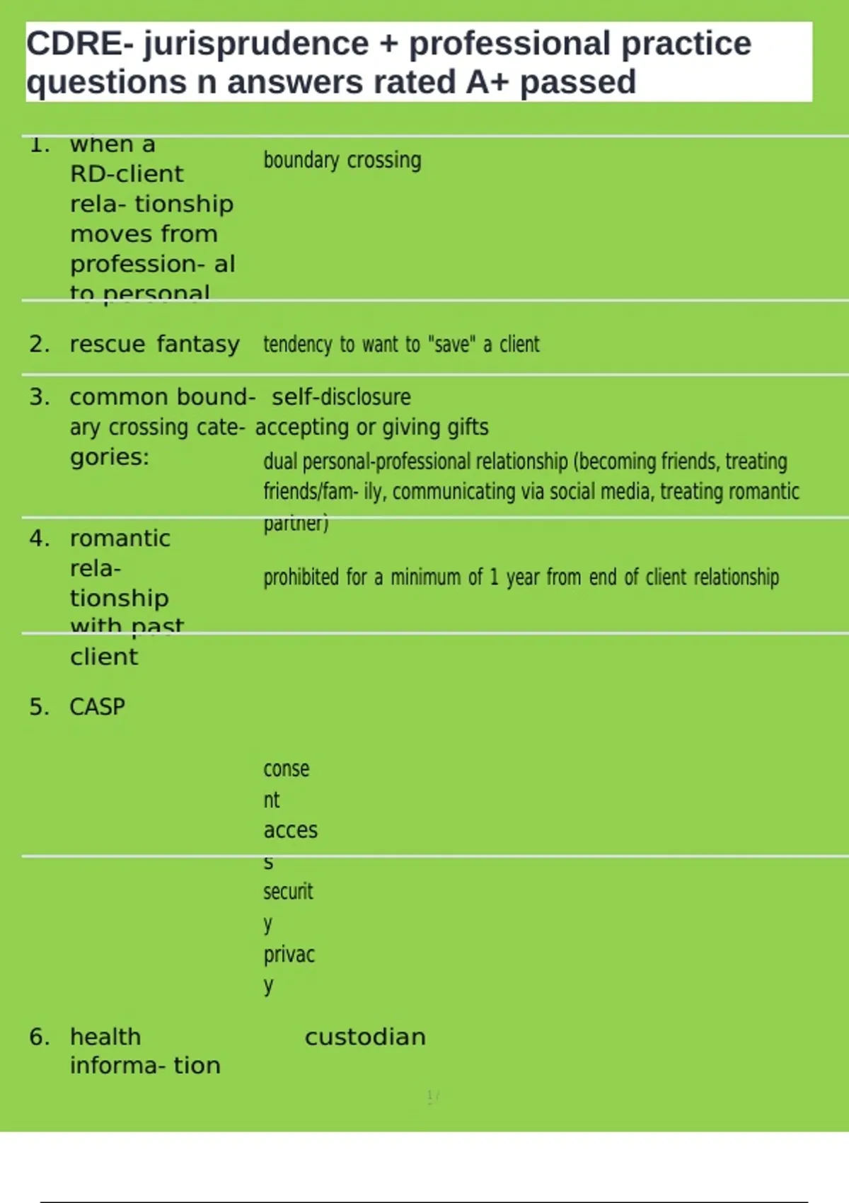 CDRE- jurisprudence + professional practice questions n answers rated A+ passed