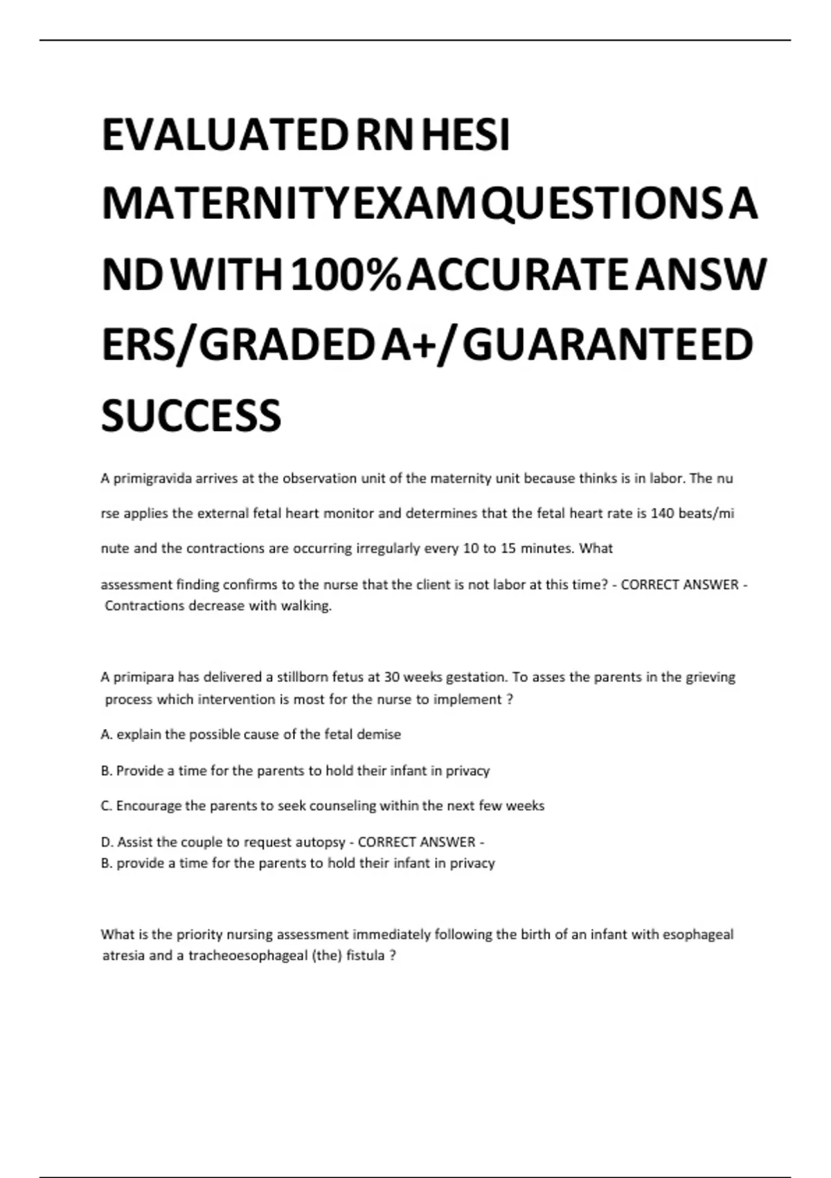 MATERNITY EXAM QUESTIONS A qe qe qe