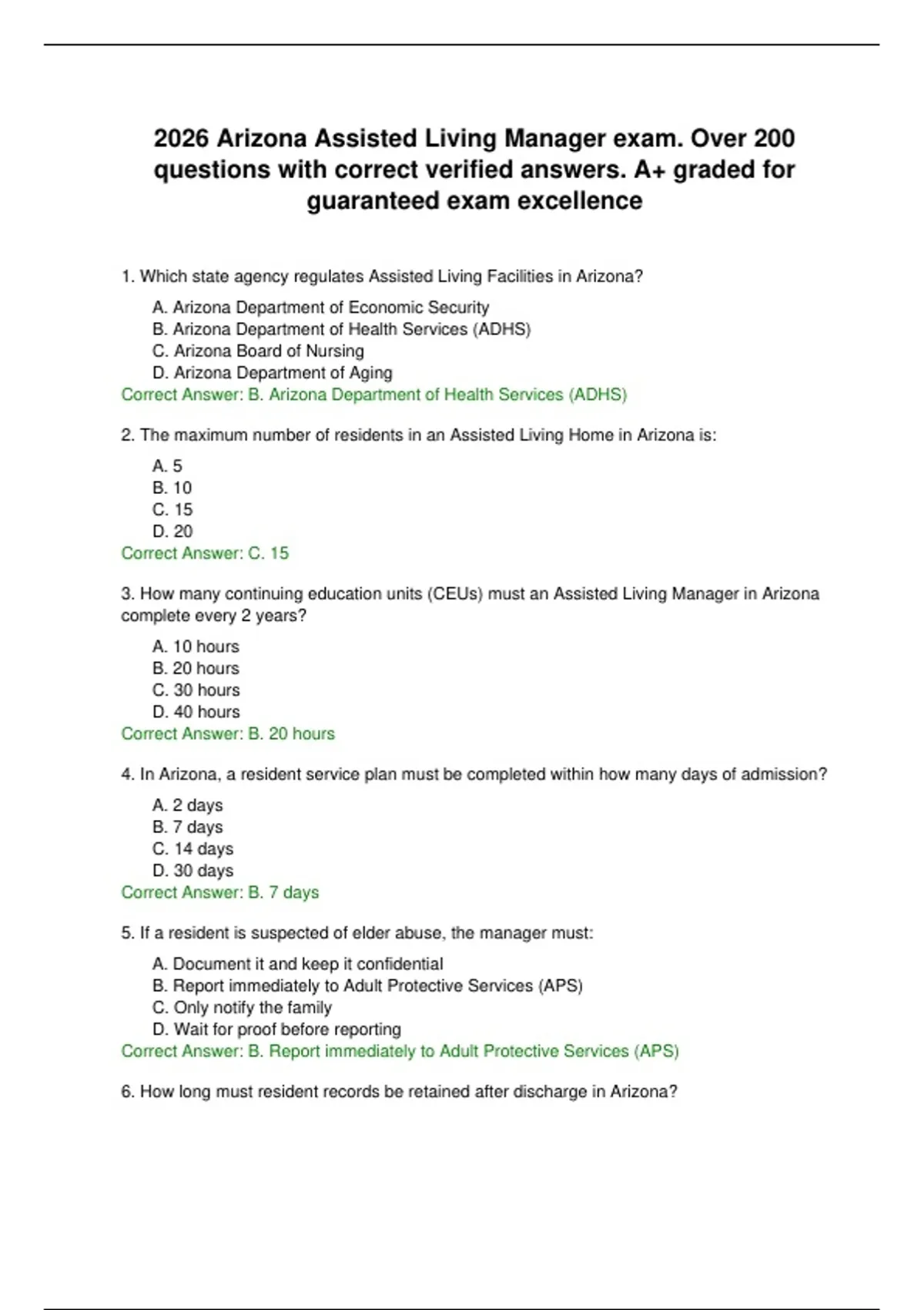 7. Which of the following BEST describes the role of an Assisted Living Manager?