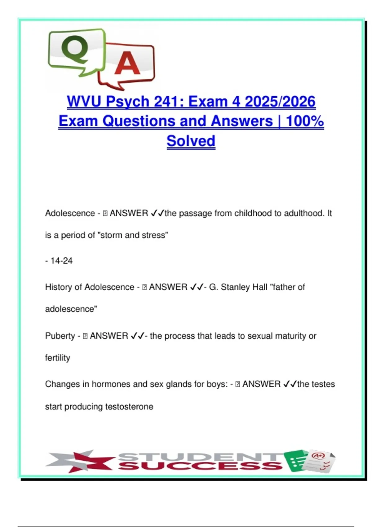 History of Adolescence - 🧠 ANSWER ✔✔- G. Stanley Hall "father of