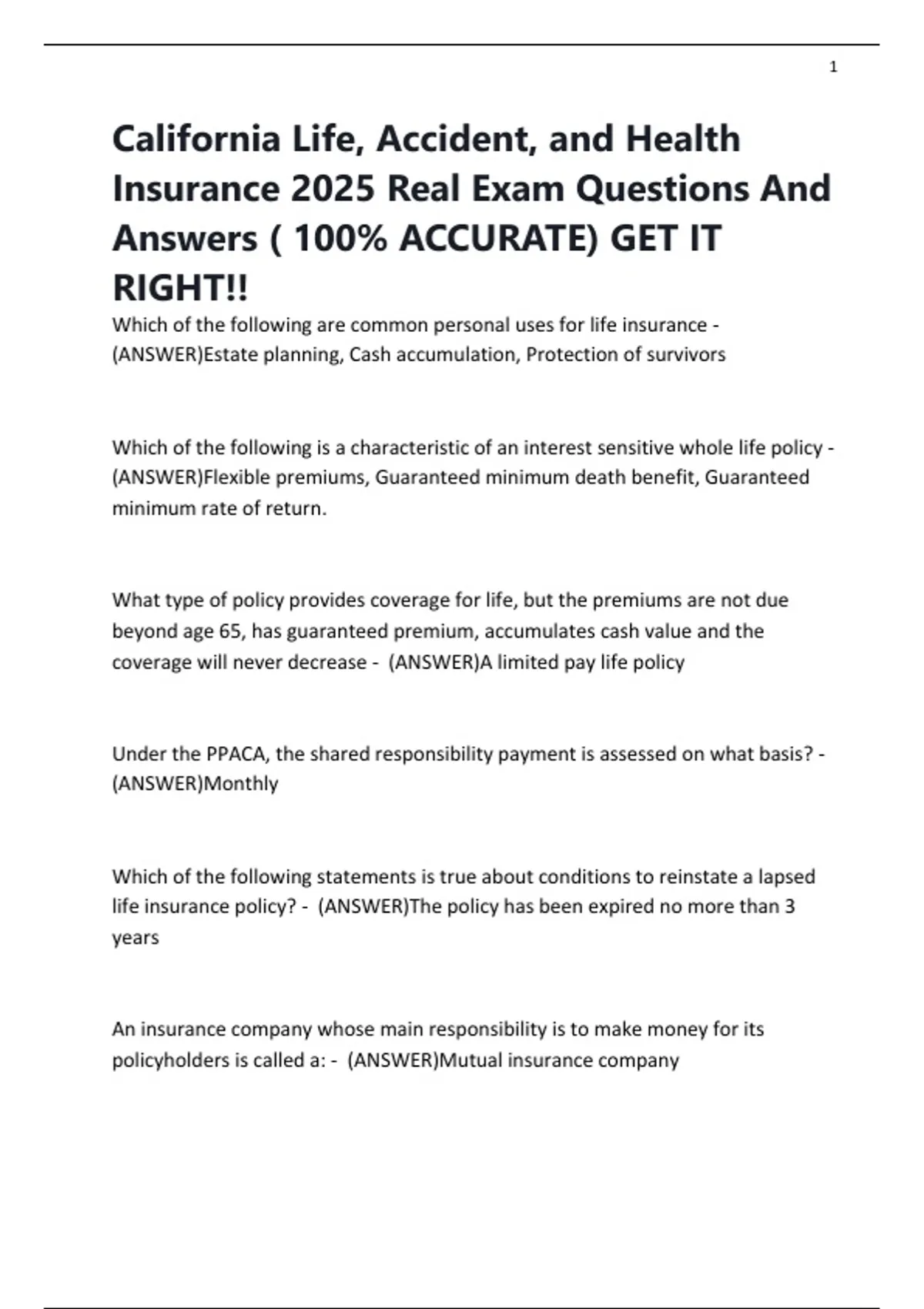 Insurance 2025 Real Exam Questions And