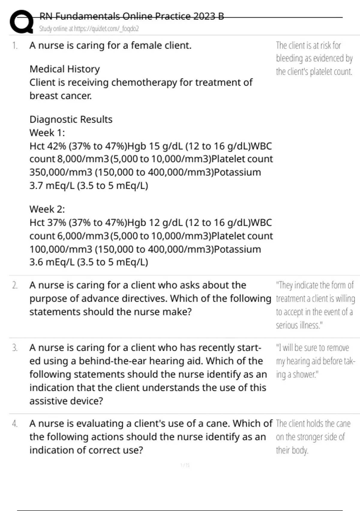 3. A nurse is caring for a client who has recently start- "I will be sure to remove