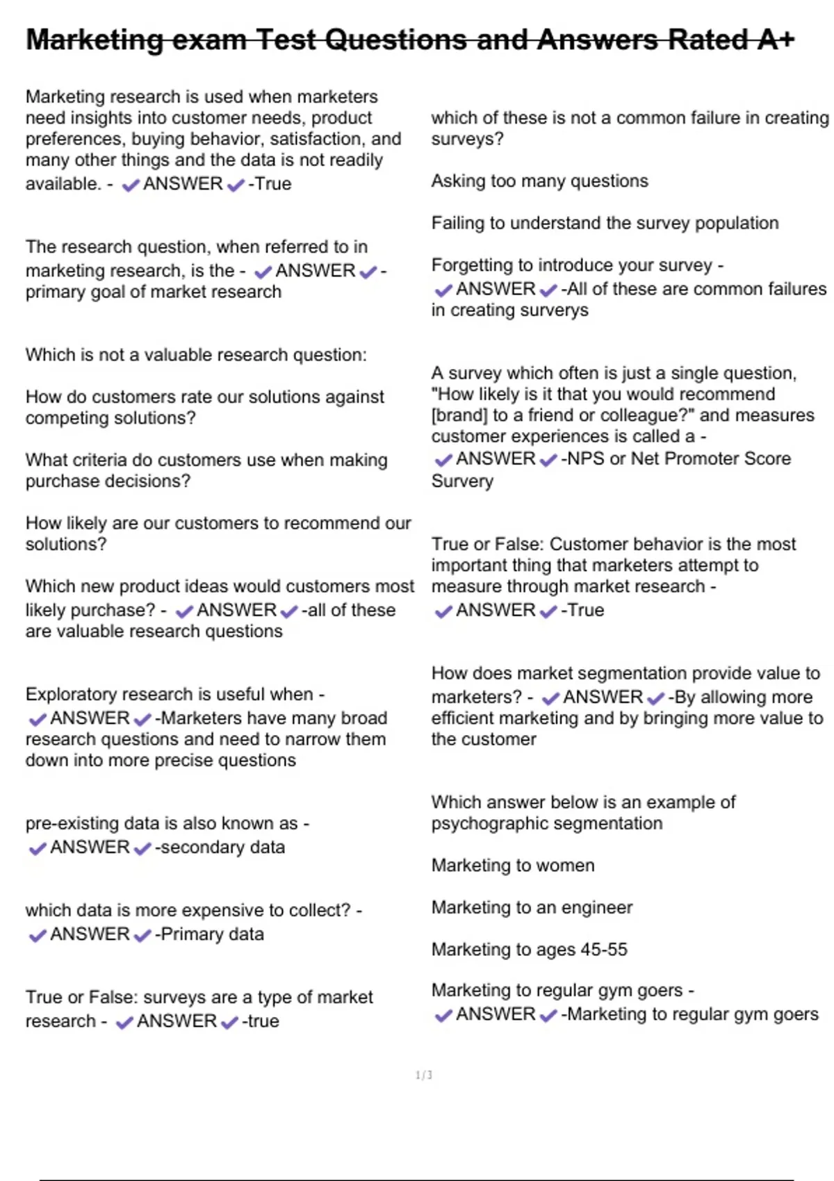research - ANSWER -true ANSWER -Marketing to regular gym goers