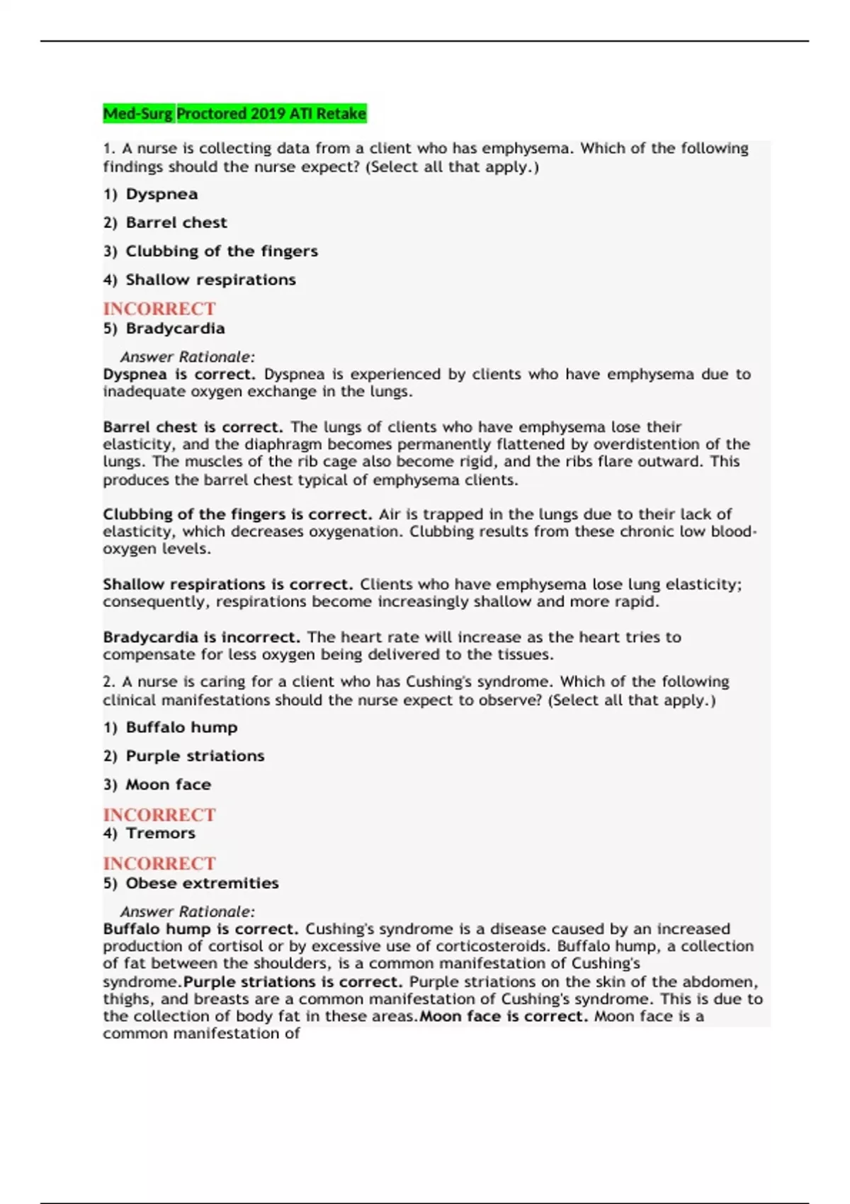 Med-Surg Proctored 2019 ATI Retake with NGN / Med-Surg Proctored 2019 ATI Retake with NGN Latest