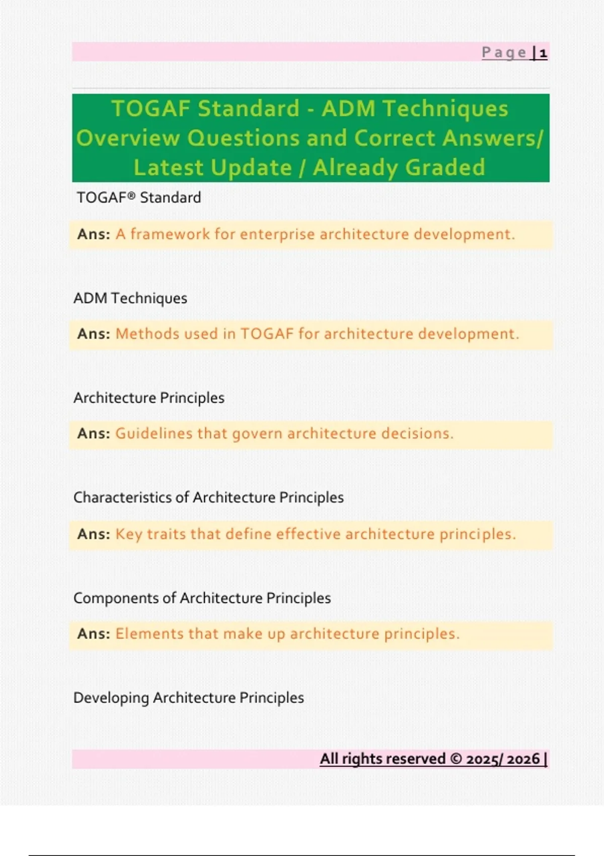 TOGAF Standard - ADM Techniques Overview Questions and Correct Answers/ Latest Update / Already Graded