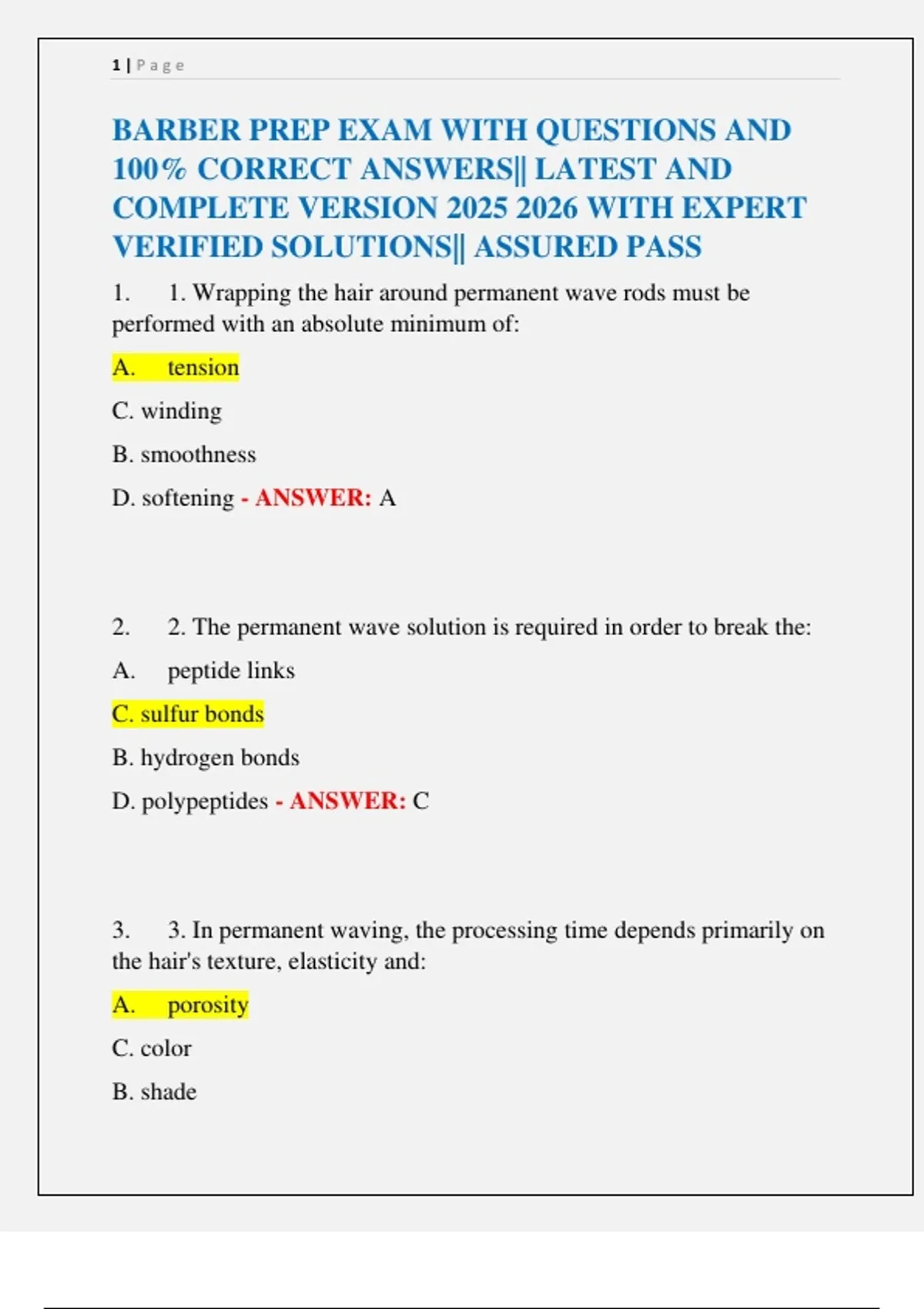 BARBER PREP EXAM WITH QUESTIONS AND