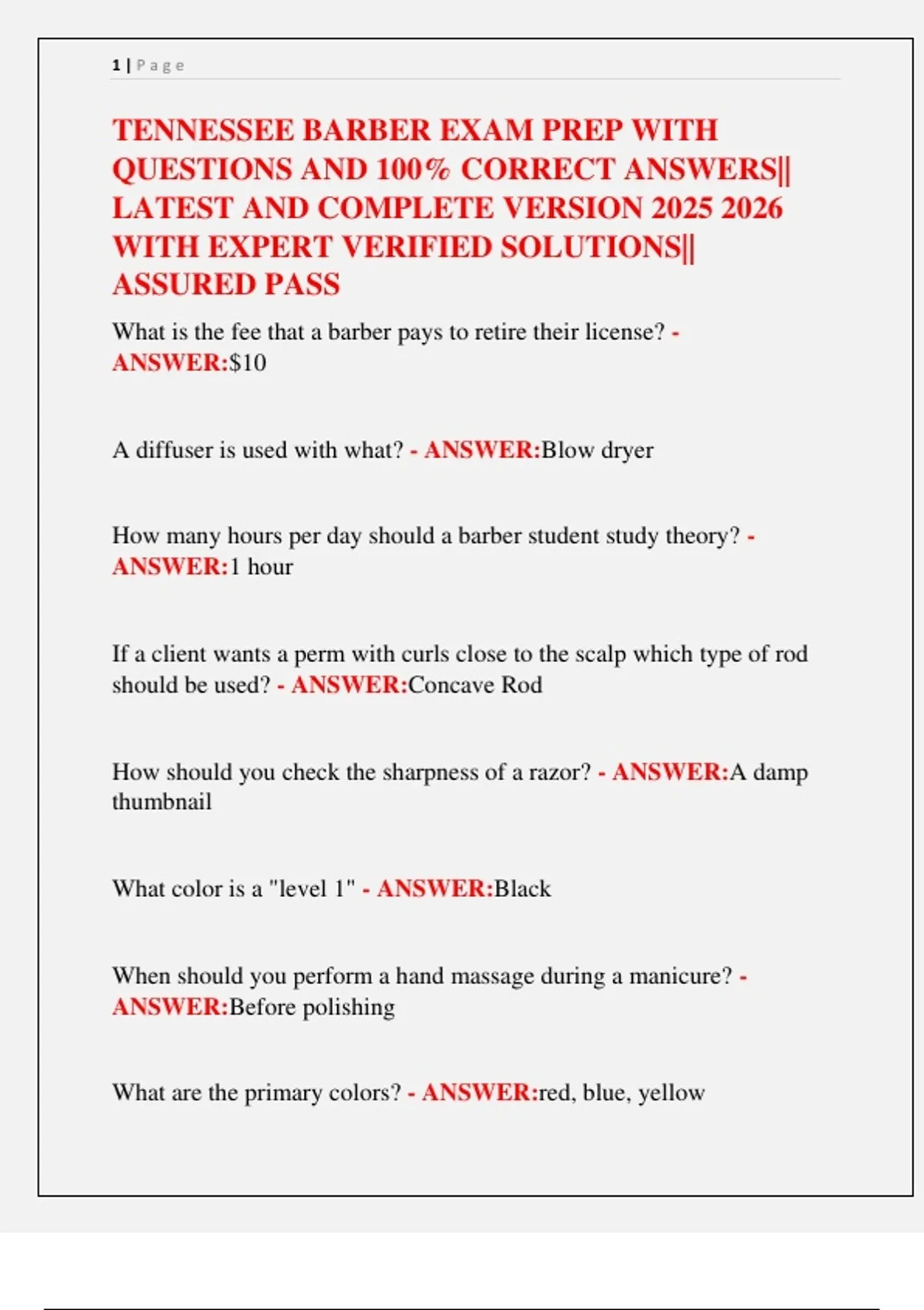 TENNESSEE BARBER EXAM PREP WITH