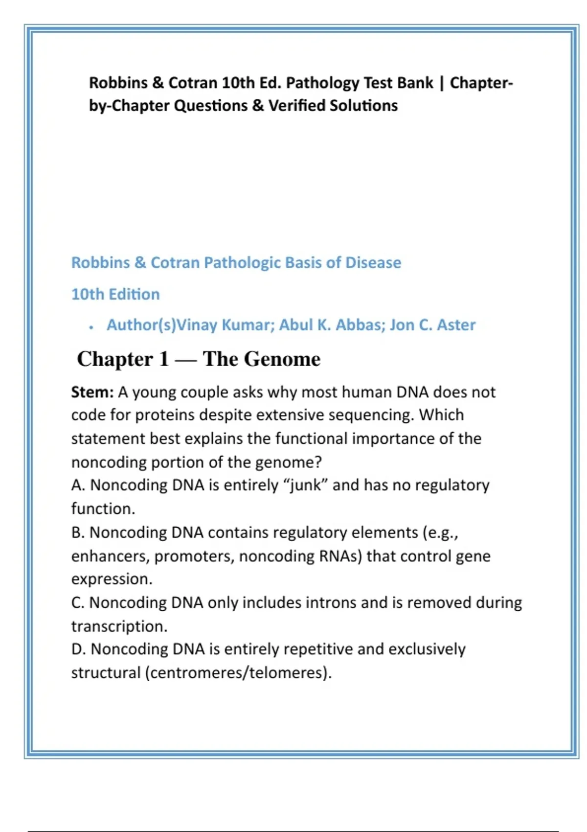 • C: Incorrect — Introns are noncoding but noncoding DNA