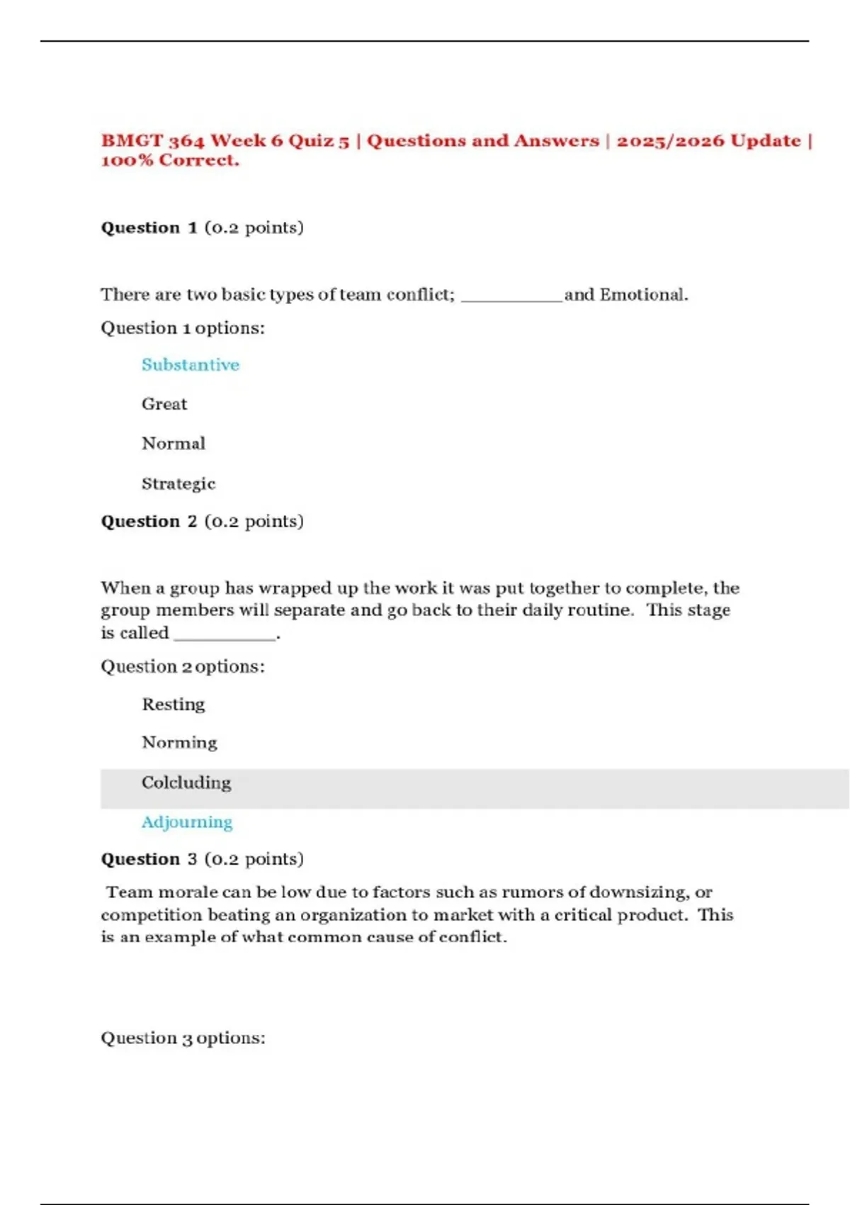 BMGT 364 Week 6 Quiz 5 | Questions and Answers | 2025/2026 Update | 100% Correct.