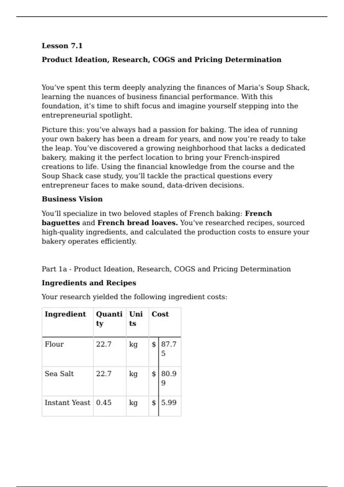 FIN 300 Case Study Lesson 7.1 Product Ideation, Research, COGS and Pricing Determination - Maria’s Soup Shack| Answered Latest fall 2025/26.