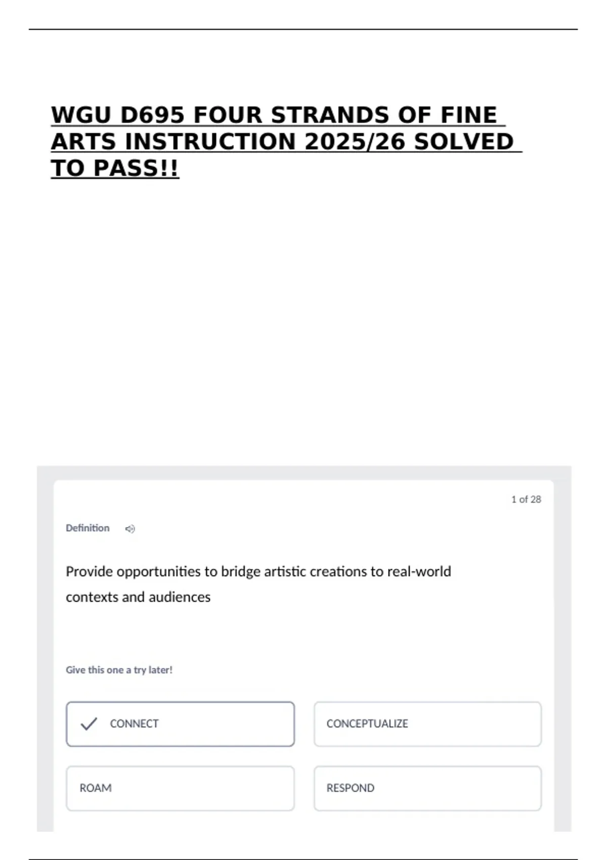WGU D695 FOUR STRANDS OF FINE ARTS INSTRUCTION 2025/26 SOLVED TO PASS!!