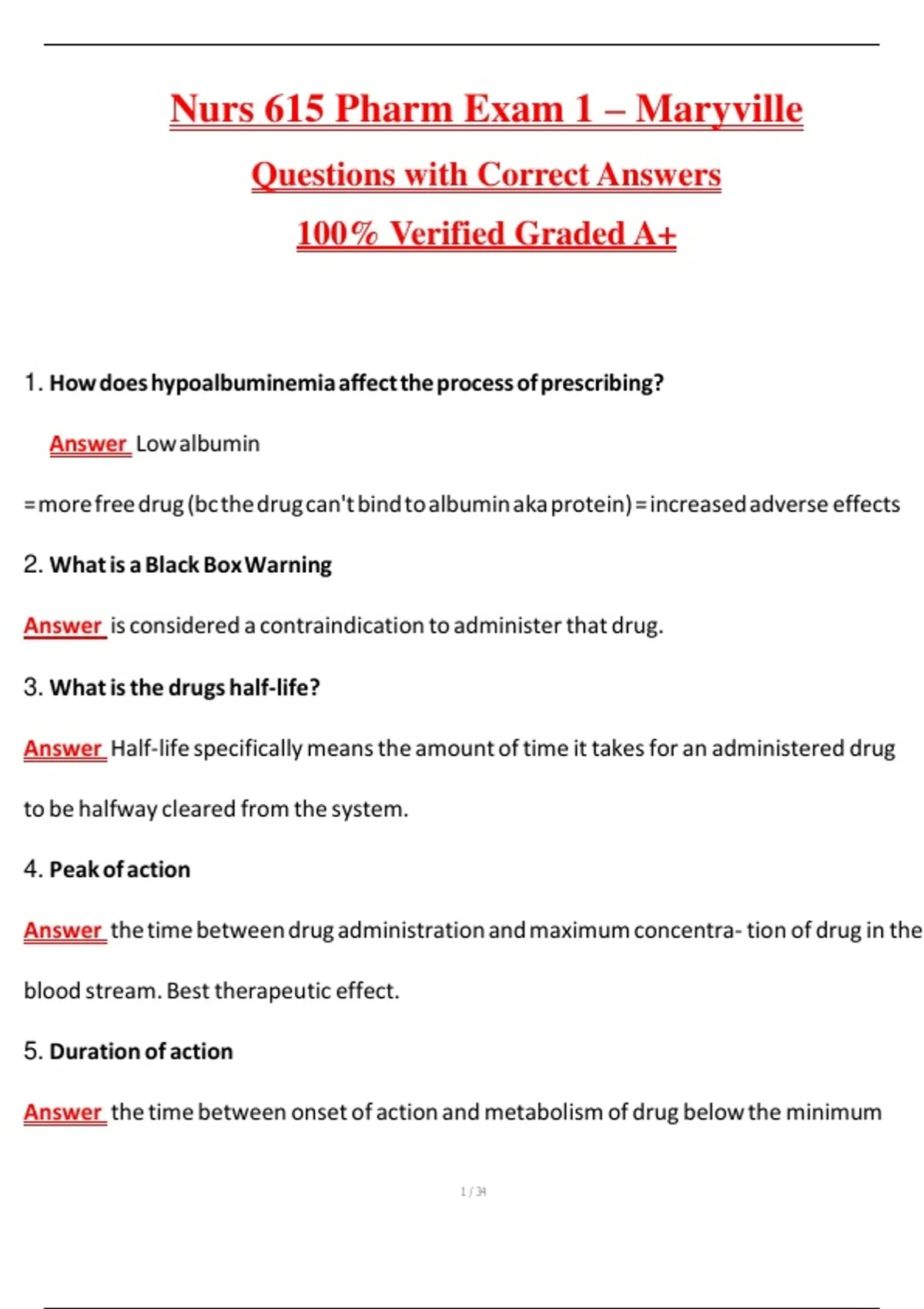Nurs 615 Pharm Exam 1 (Latest 2026/2027 Update) Complete Questions and Guide Answers, 100% Verified Graded A+ Maryville