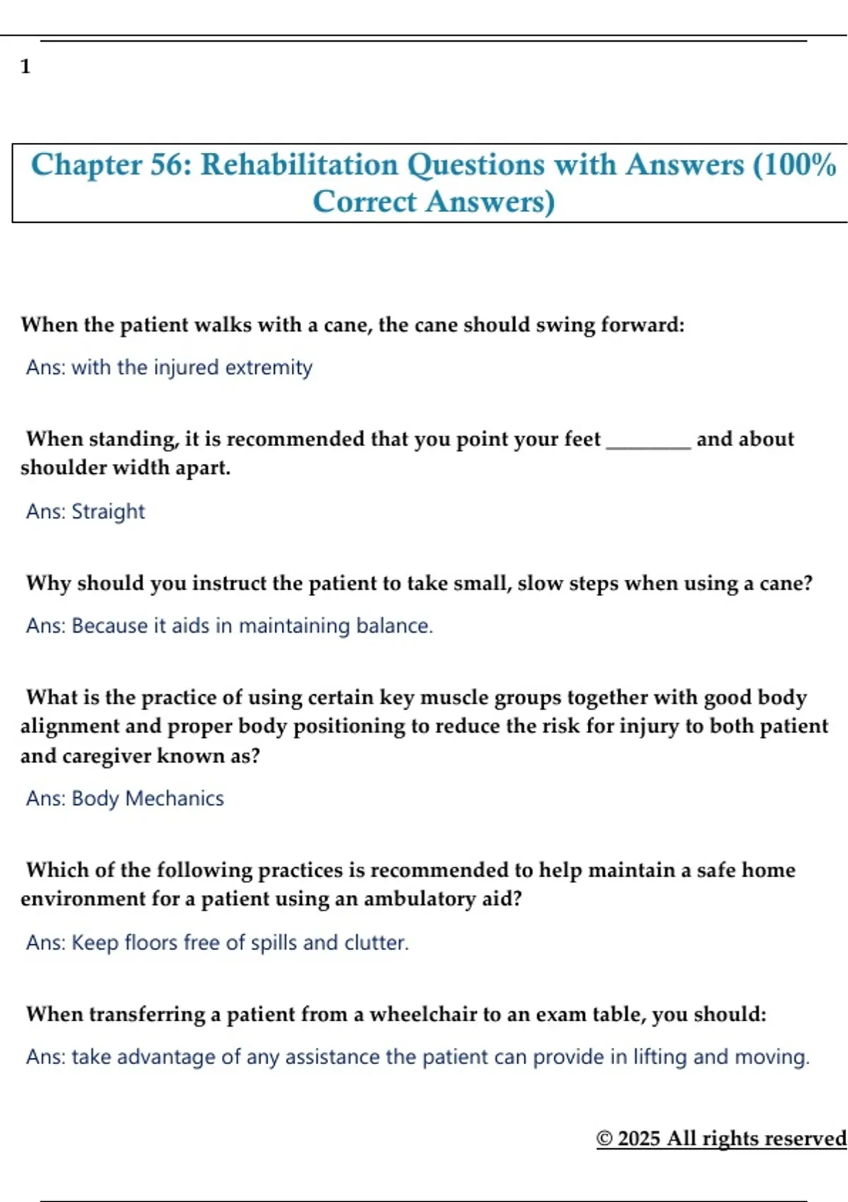 Chapter 56: Rehabilitation Questions with Answers (100%