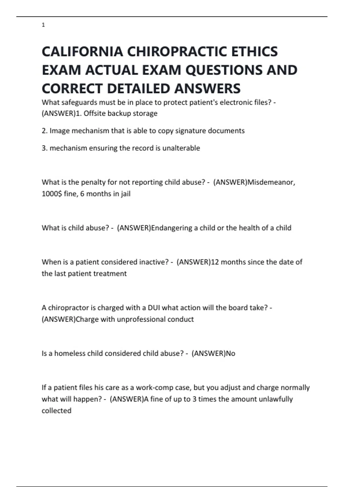 CALIFORNIA CHIROPRACTIC ETHICS EXAM ACTUAL EXAM QUESTIONS AND CORRECT DETAILED ANSWERS