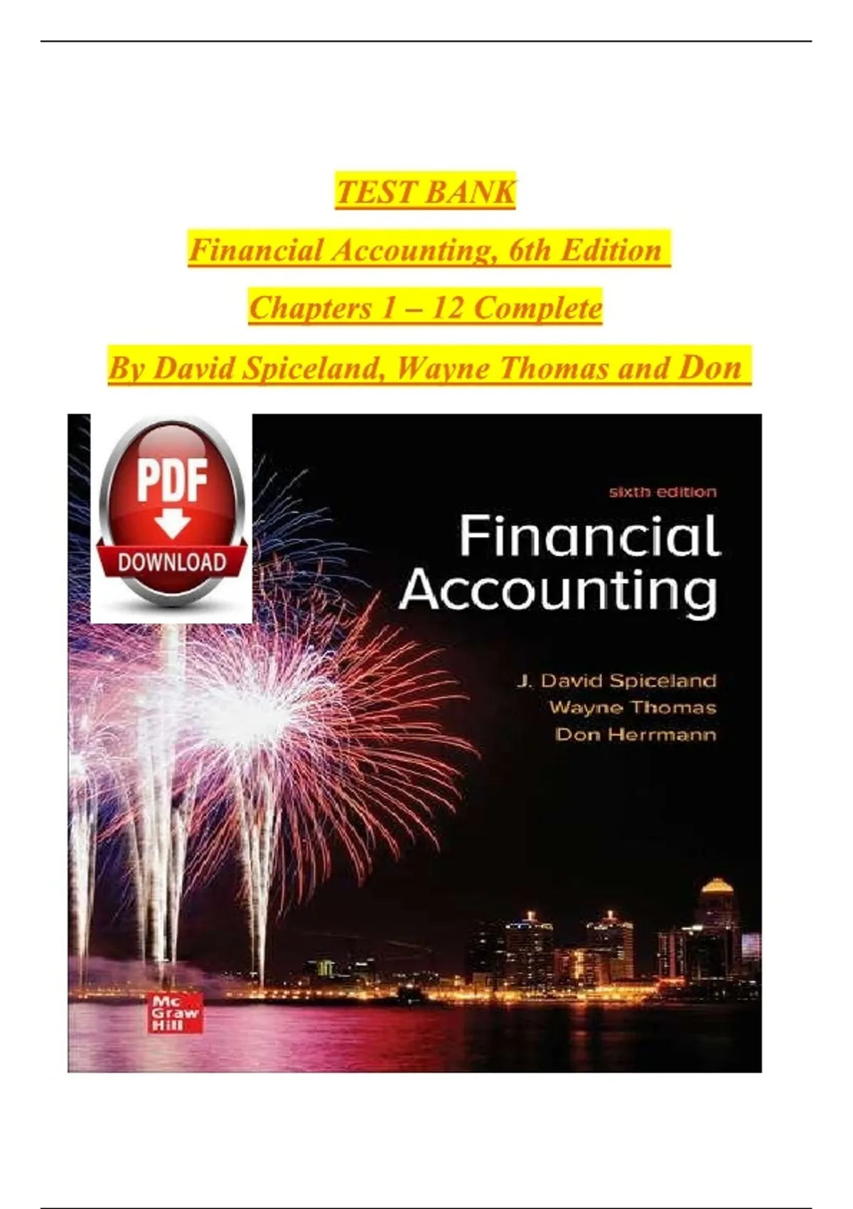 TEST BANK Financial Accounting, 6th Edition Chapters 1 – 12 Complete By David Spiceland, Wayne Thomas and Don Herrmann
