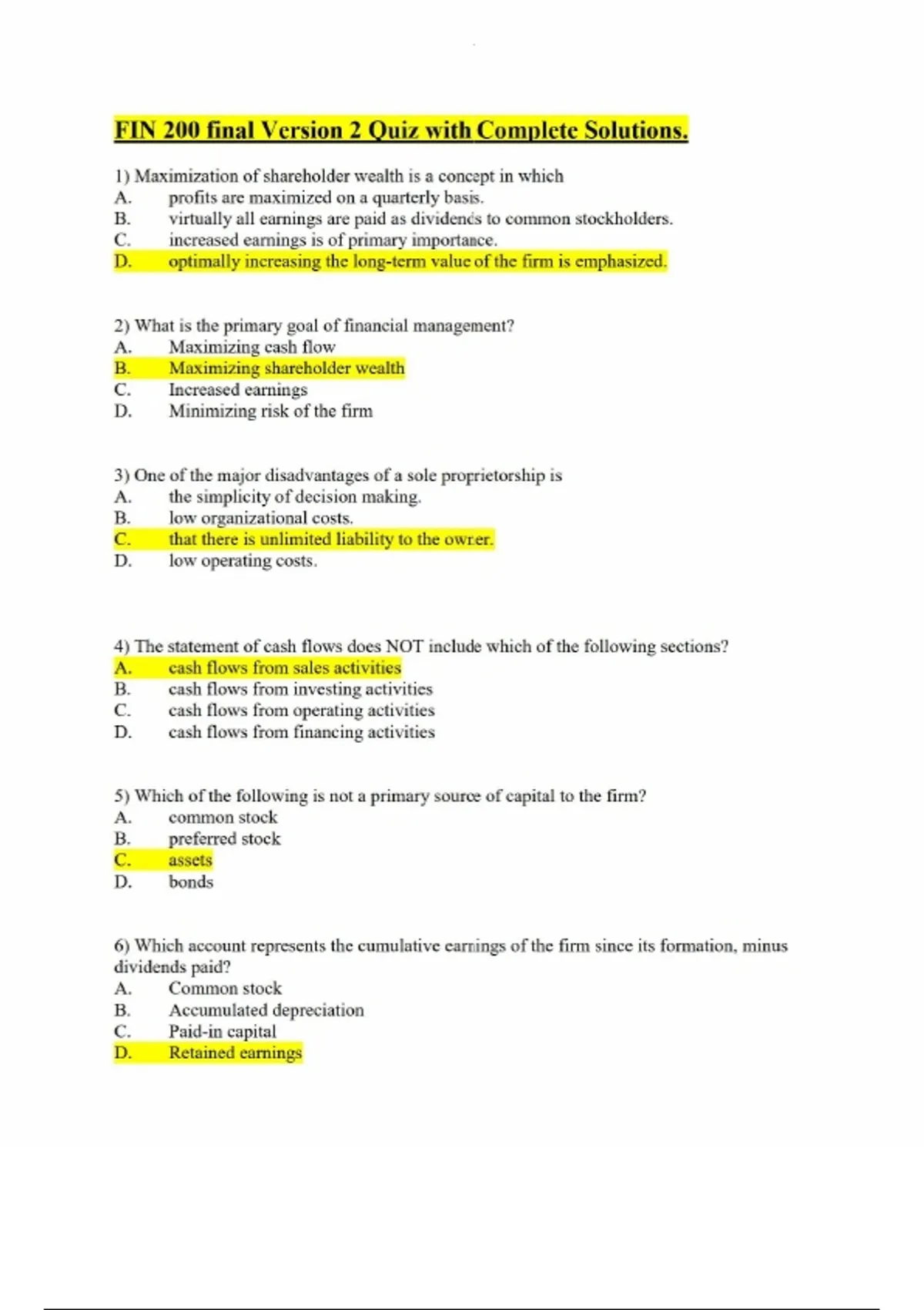 FIN 200 final Version 2 Quiz with Complete Solutions.FIN 200 final Version 2 Quiz with Complete Solutions.