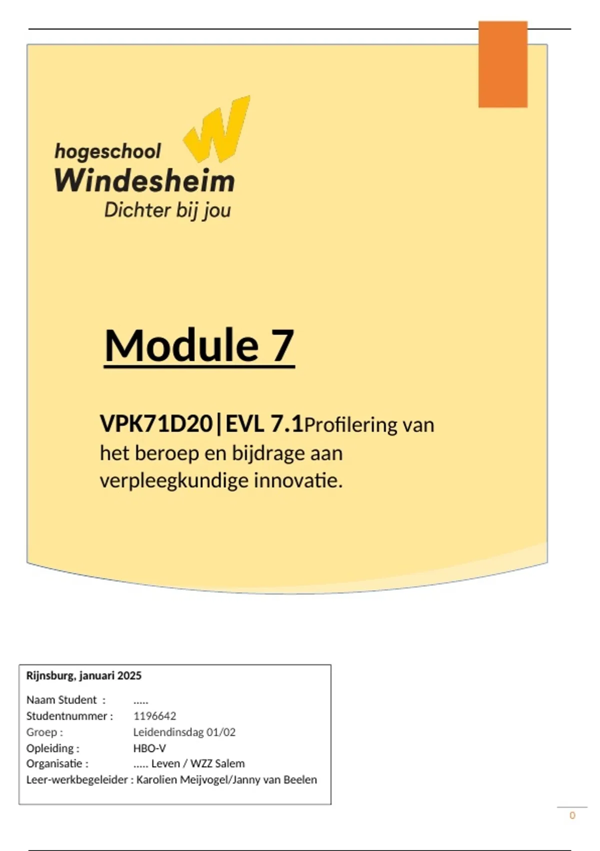 Welkom bij module 7.1: Profilering van het beroep en bijdrage aan verpleegkundige innovatie. Mijn naam
