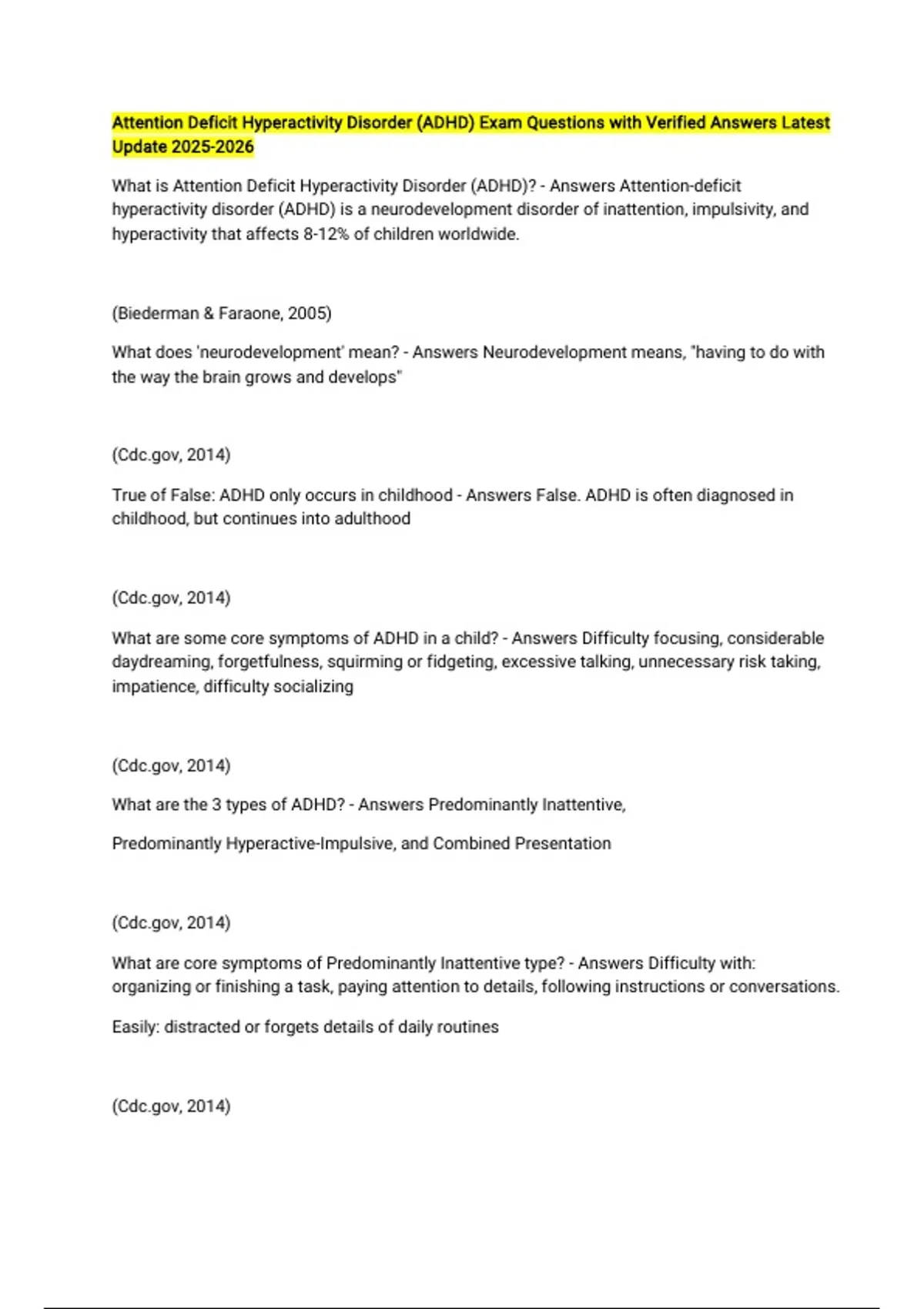 True of False: ADHD only occurs in childhood - Answers False. ADHD is often diagnosed in