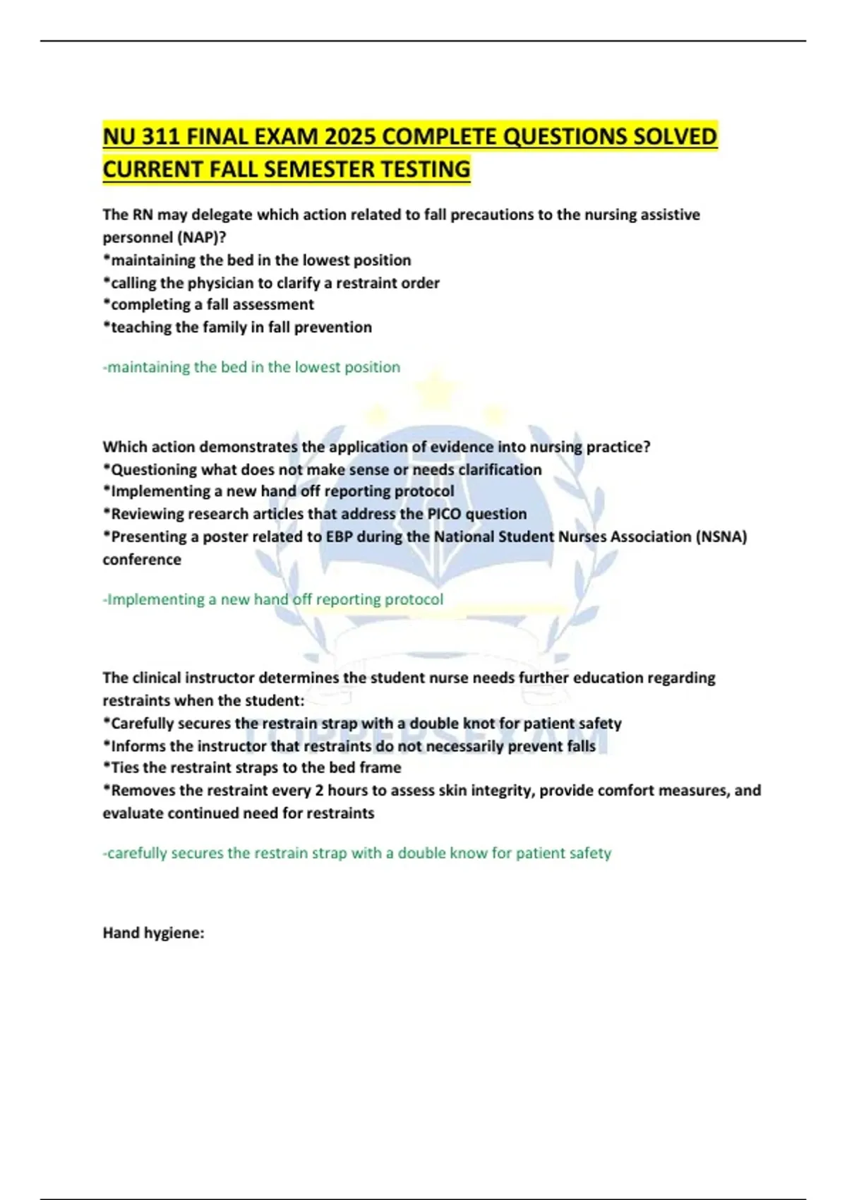 NU 311 FINAL EXAM 2025 COMPLETE QUESTIONS SOLVED