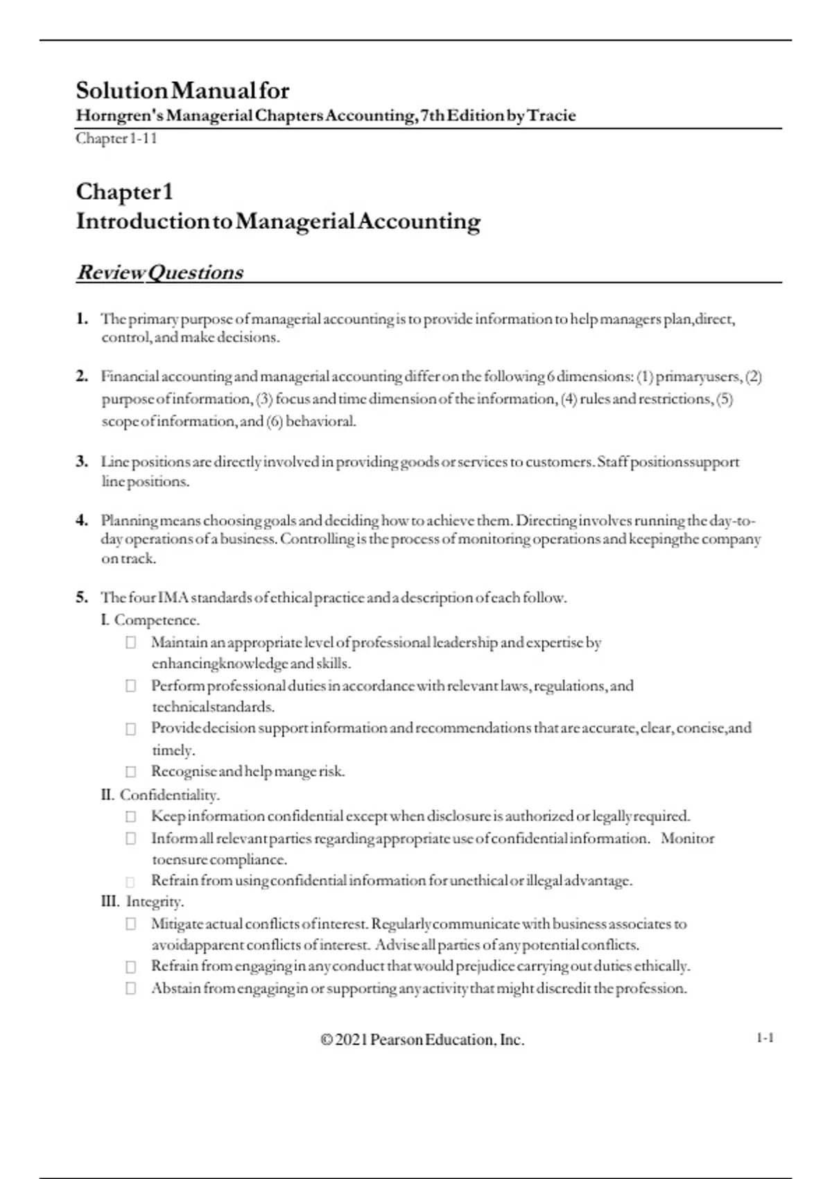 Horngren's Managerial Chapters Accounting, 7th Edition by Traciev v v v v v v