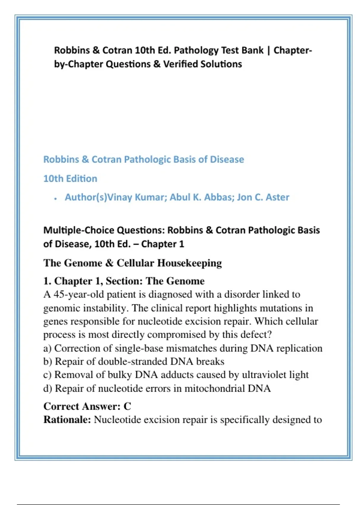 Multiple-Choice Questions: Robbins & Cotran Pathologic Basis