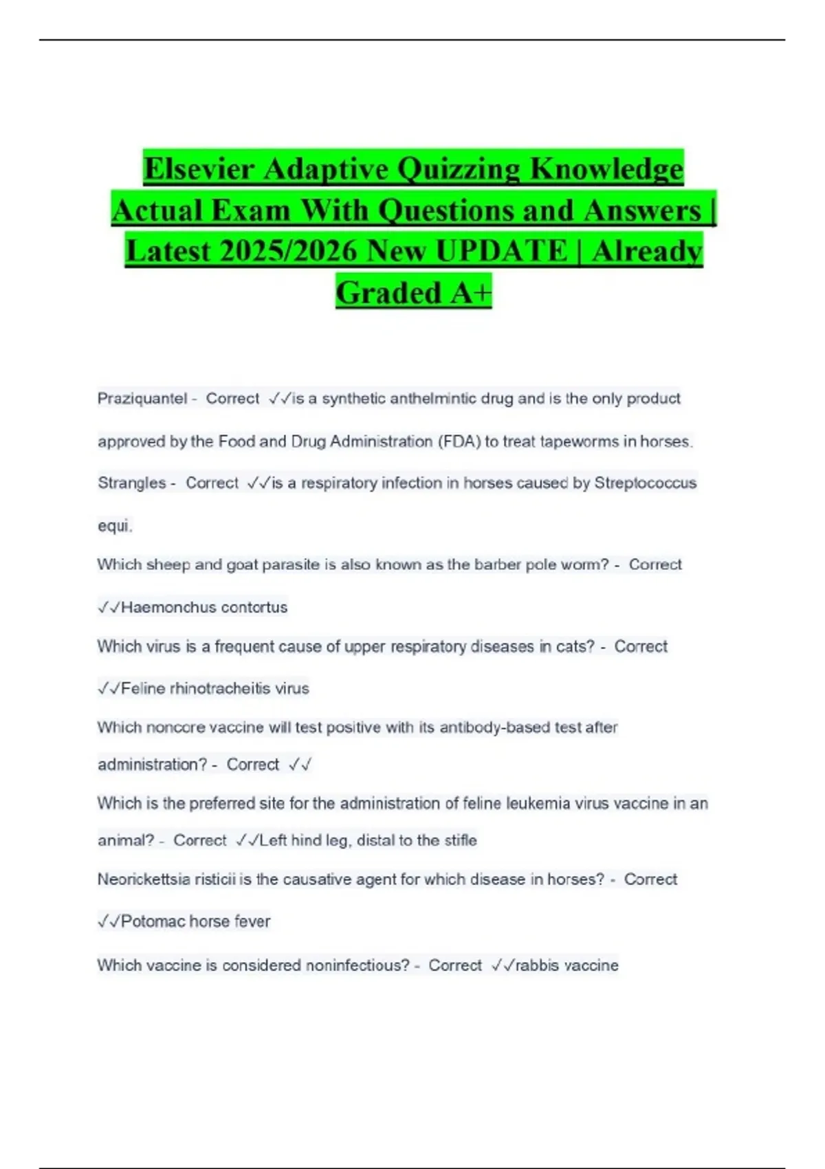 Elsevier Adaptive Quizzing Knowledge Actual Exam With Questions and Answers | Latest 2025/2026 New UPDATE | Already Graded A+