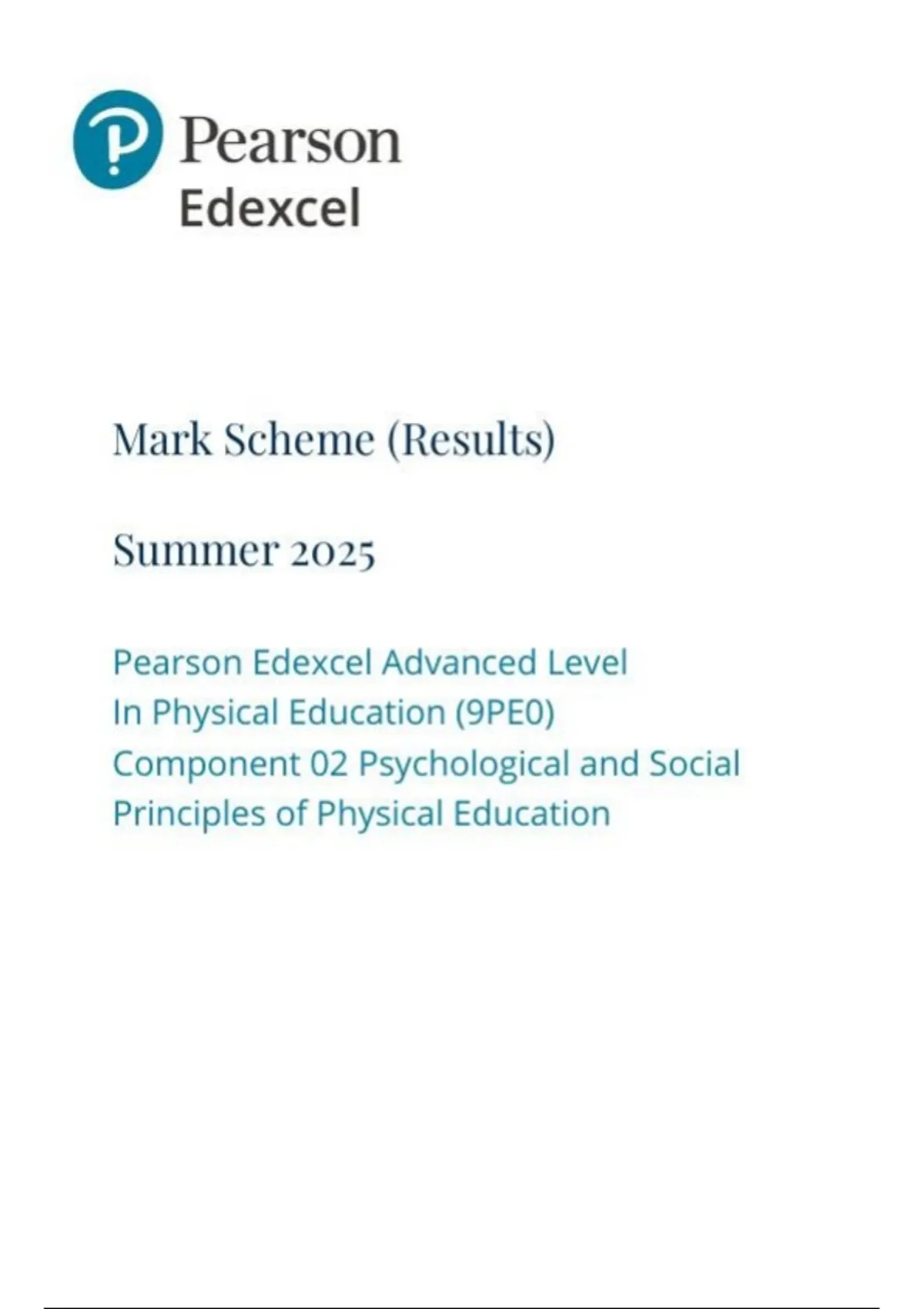 PEARSON EDEXCEL A LEVEL PHYSICAL EDUCATION PAPER 2 JUNE 2025 FINAL MARK SCHEME