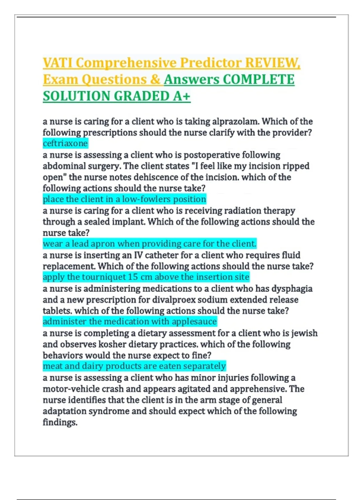 VATI Comprehensive Predictor REVIEW, Exam Questions & Answers COMPLETE SOLUTION GRADED A+