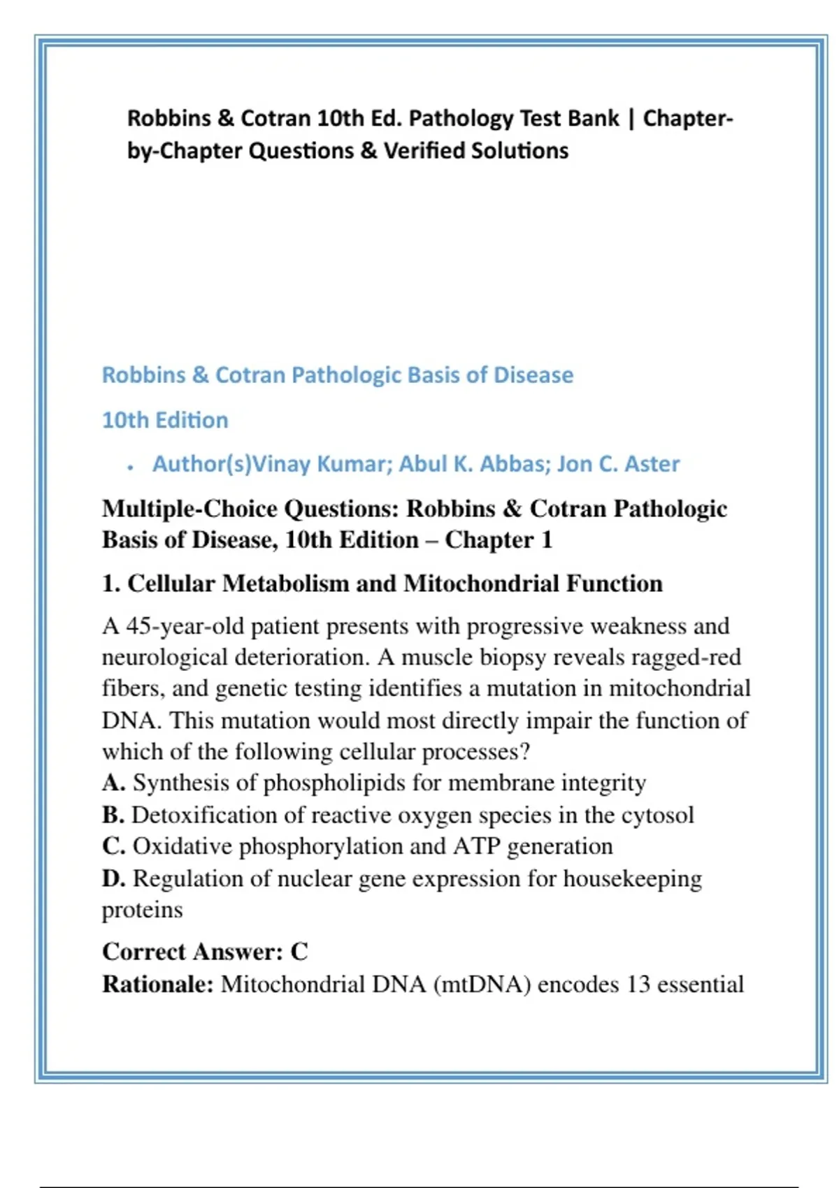 Multiple-Choice Questions: Robbins & Cotran Pathologic