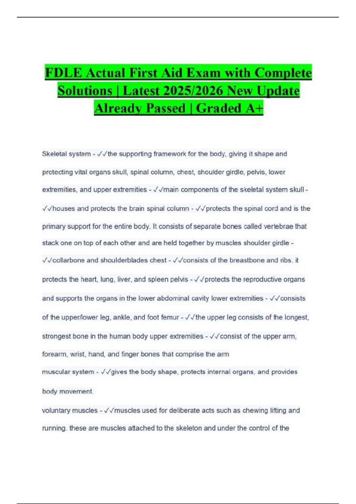 FDLE Actual First Aid Exam with Complete Solutions | Latest 2025/2026 New Update Already Passed | Graded A+