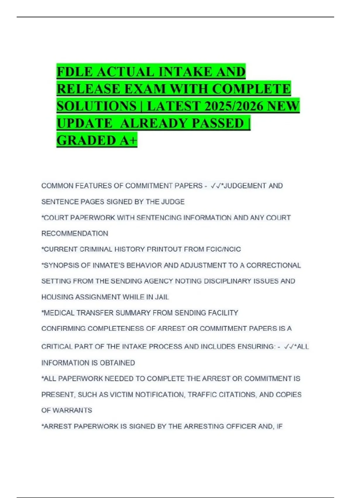 FDLE ACTUAL INTAKE AND RELEASE EXAM WITH COMPLETE SOLUTIONS | LATEST 2025/2026 NEW UPDATE ALREADY PASSED | GRADED A+